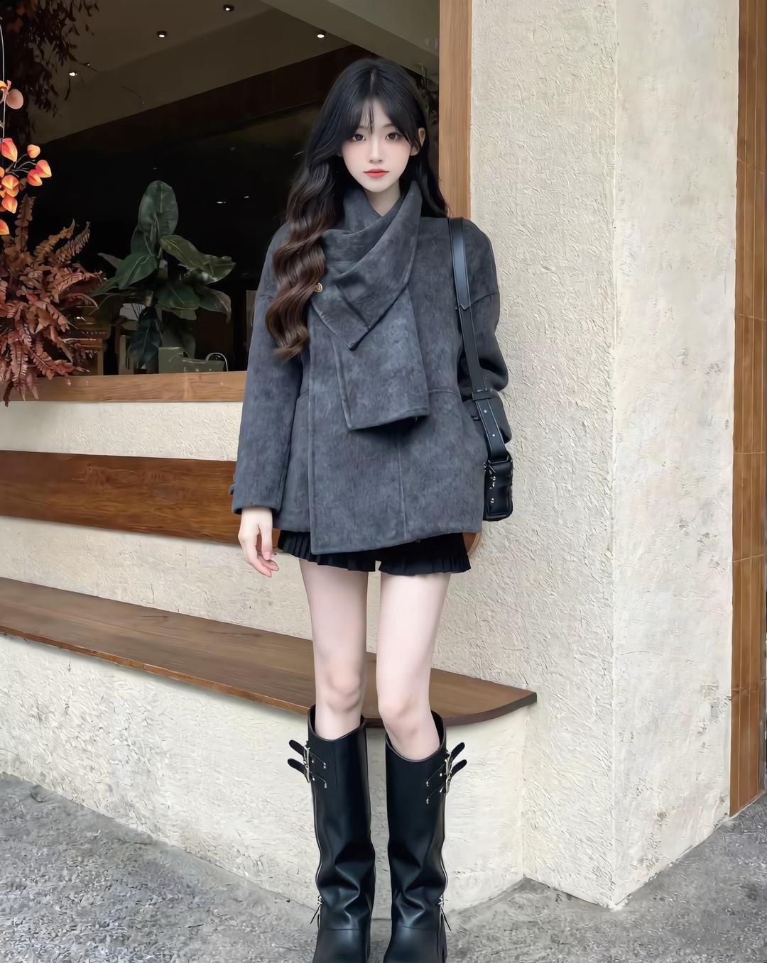 秋日穿搭指南:灰色大衣+黑色短裙+高筒靴,优雅又时尚!