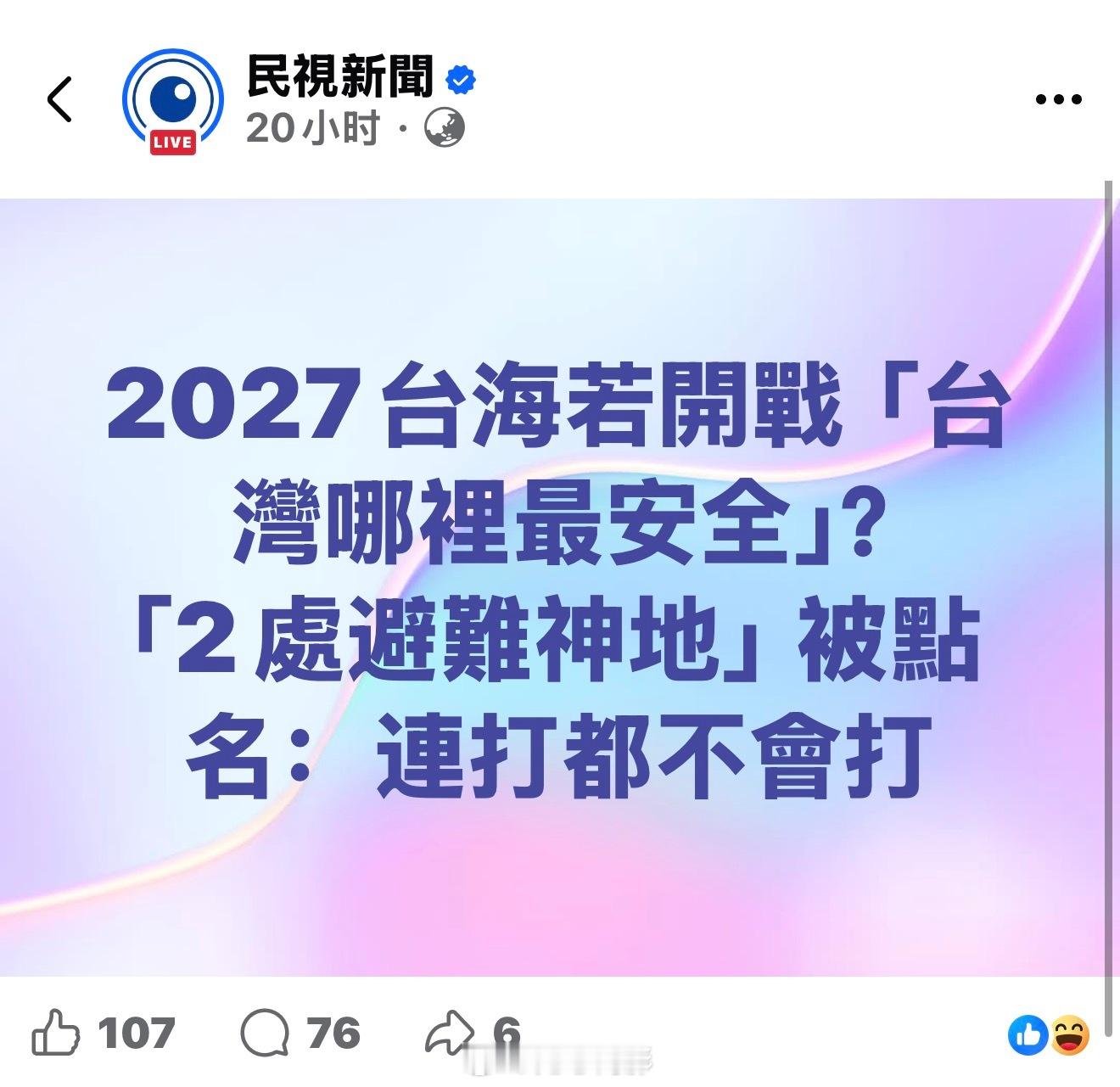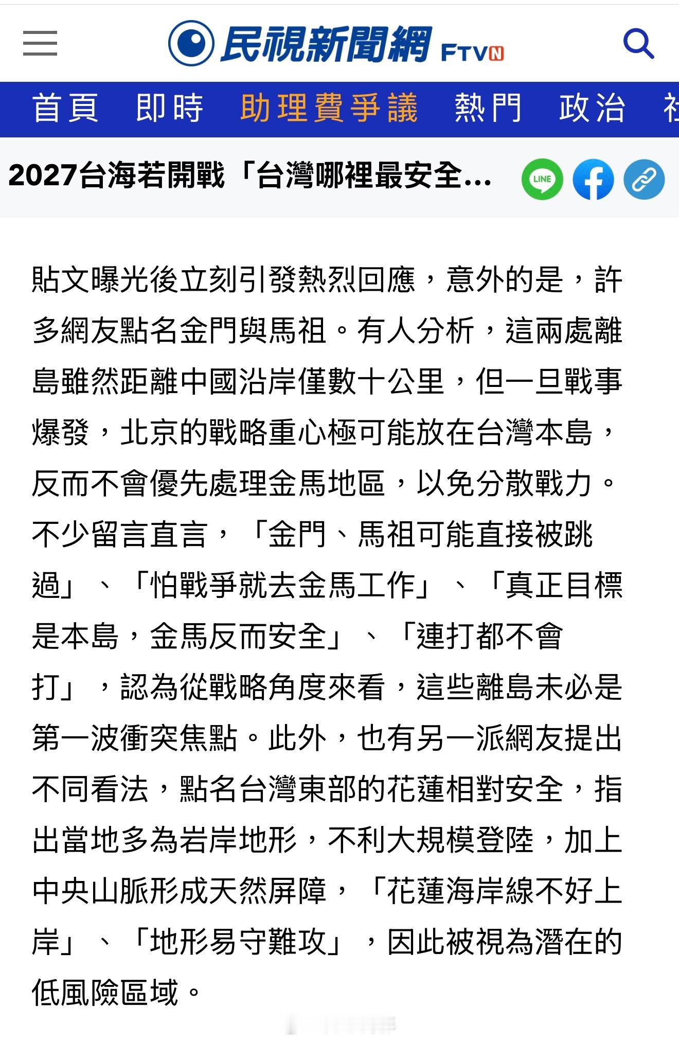 台湾绿媒开始讨论打起来躲哪里,选最多的居然是金门和马祖