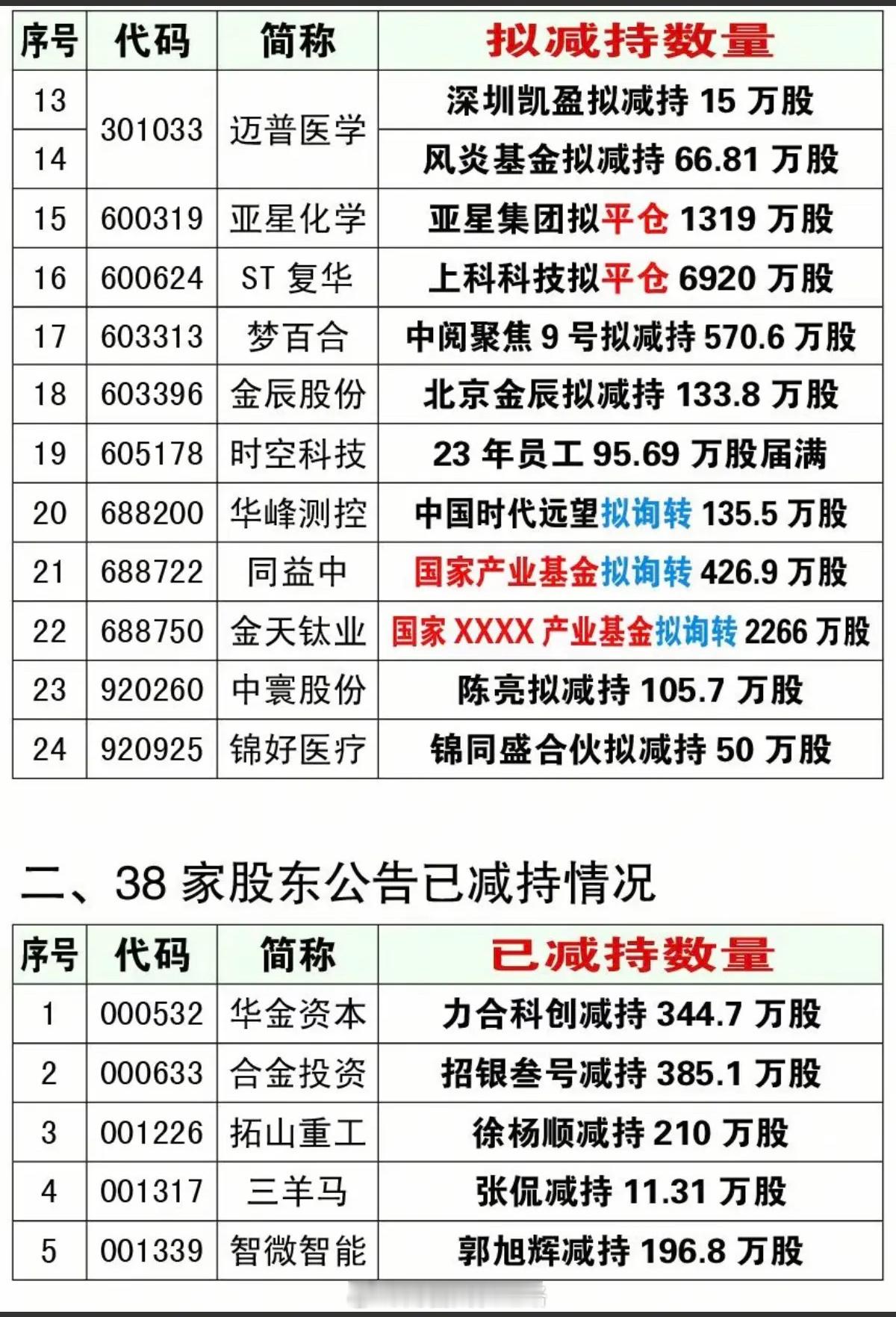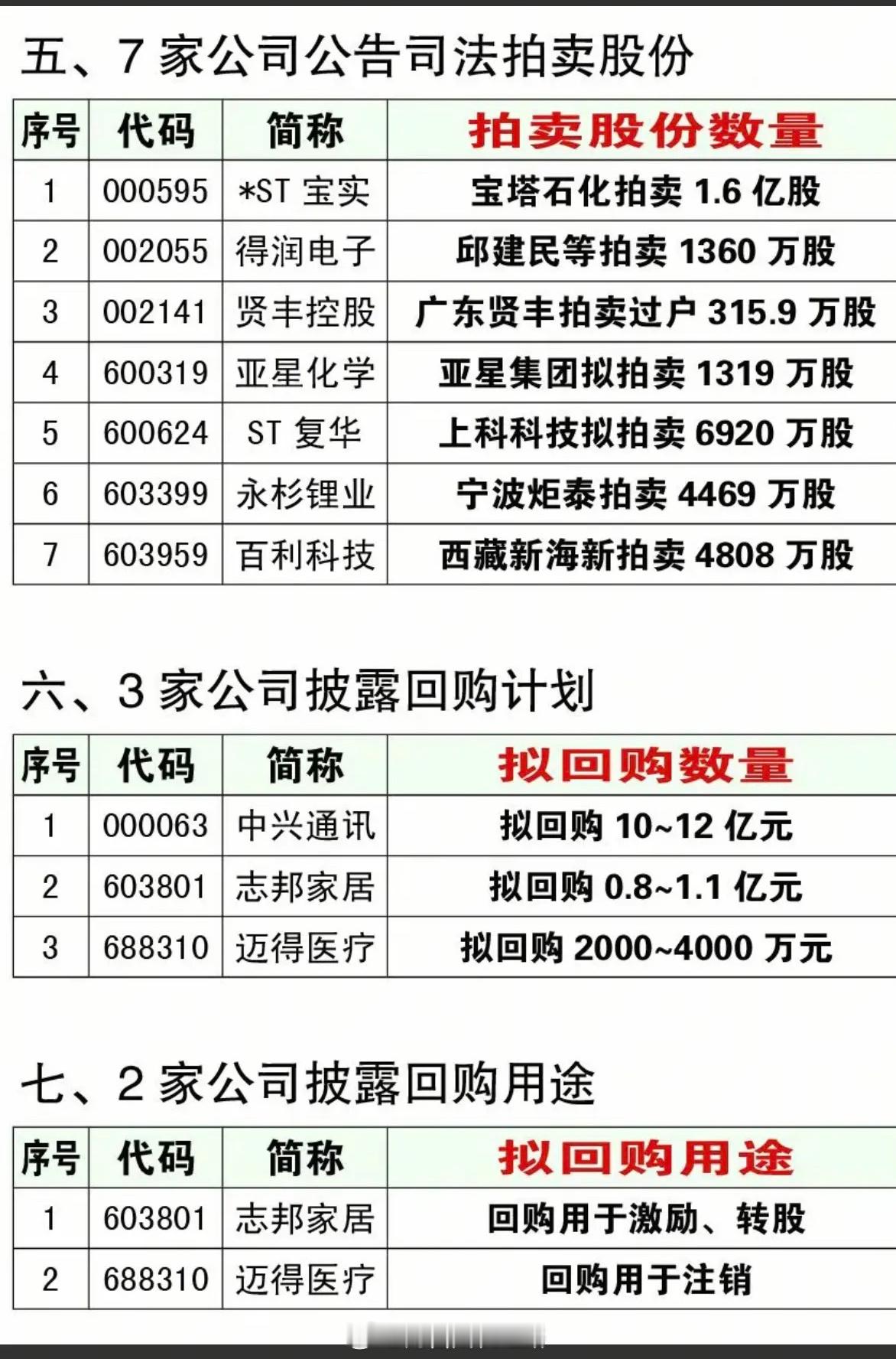 12月13日周六 最新:减持、增持、回购公告速递!一、28家公司披露减持计划二、5家公司披露增持计划三、7家公司公告法拍股份四、3家公司回购计划五、2家公司披露回购用途