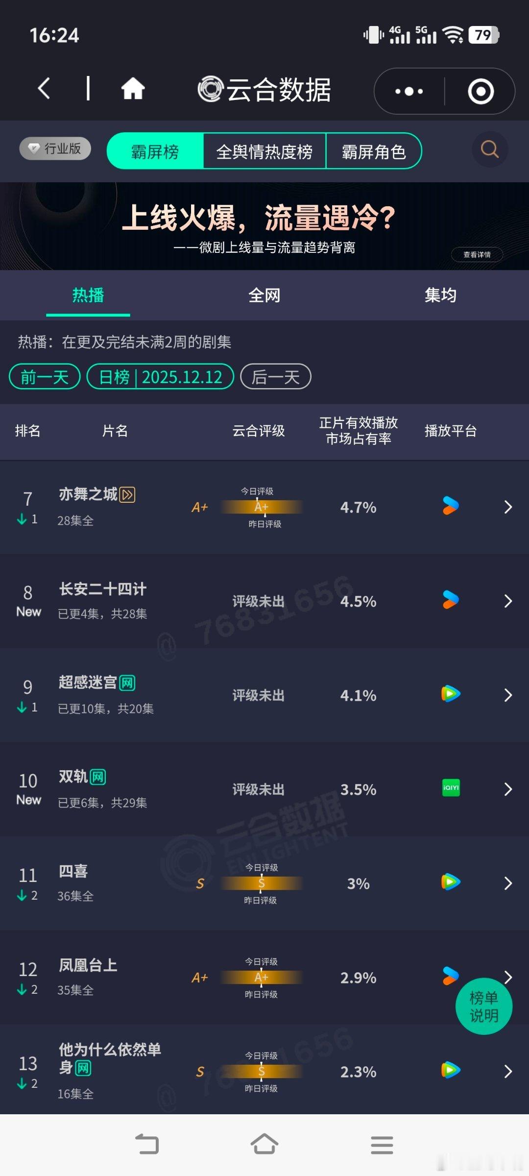 云合12月12云合,大盘估值1.70亿!长安二十四计 约 765双轨 约 600