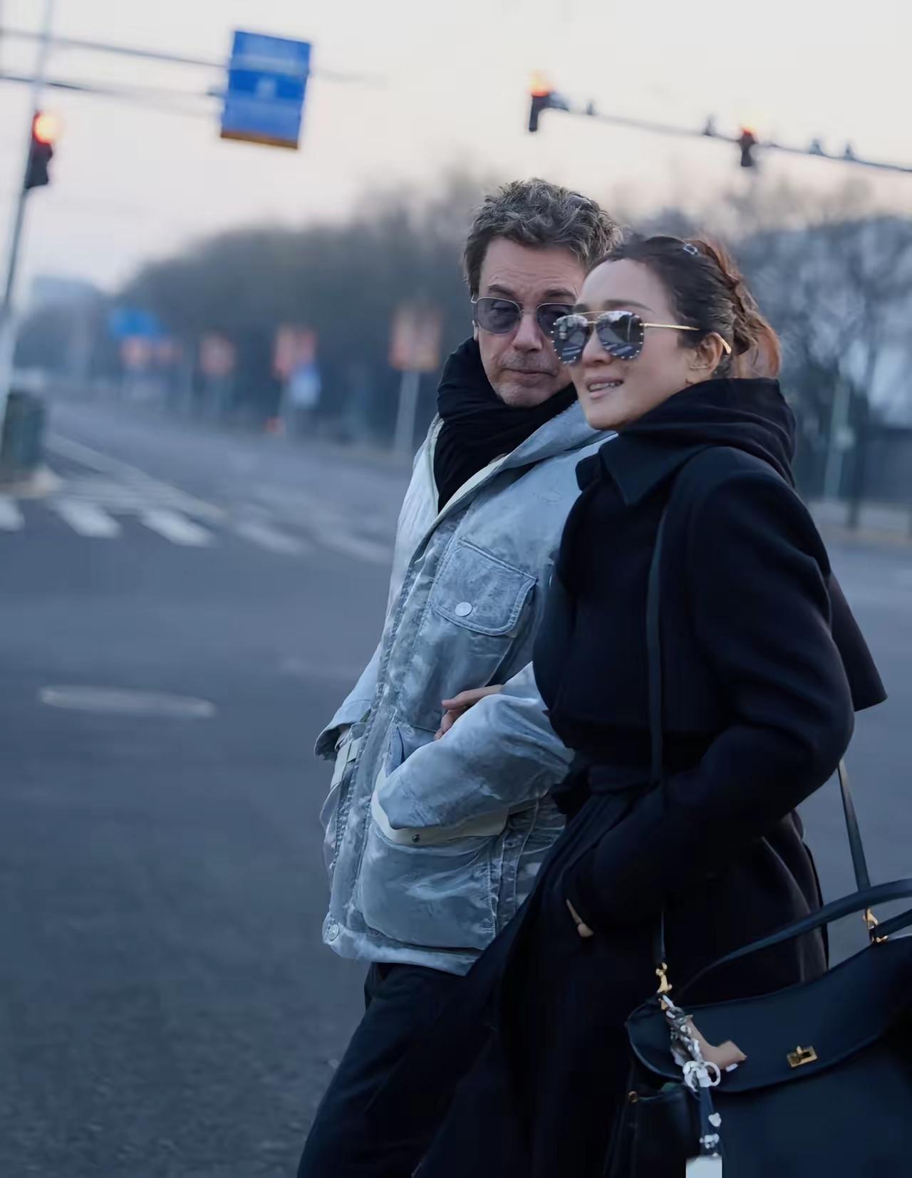 巩俐在北京被拍的照片里,和老公并肩走着,俩人手牵着手,步子慢悠悠的。那法国老公看