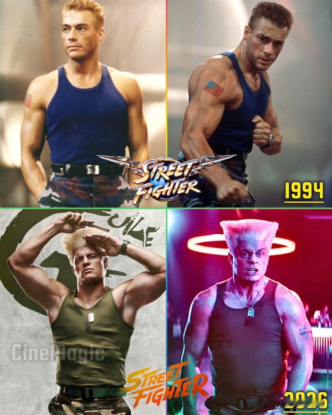 真人版《街头霸王》中的盖尔:1994 年 vs 2026 年。 1994年:让-克劳德·范达姆(《街头霸王:电影版》) 2026:科迪·罗兹(街头霸王)