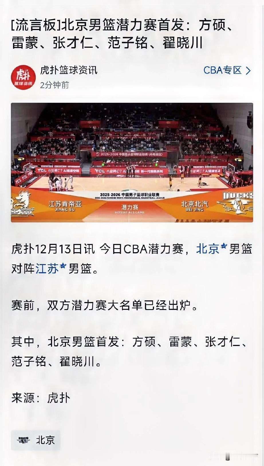 CBA第二场潜力赛,再创历史?平均年龄超30岁,方硕、翟晓川、张才仁、雷蒙、范子铭这个五人阵容,咱们CBA的领导是想看到他们哪方面的潜力呢? 这五人中,方硕35岁,翟晓川33岁,张才仁31岁,雷蒙30岁,范子铭28岁,平均年龄在31岁以上。 说实话,看到这么多老将,因为CBA的离谱政策,还要去打这个鸡肋比赛,简直就是对他们的侮辱,让他们上场去丢人。 CBA这个潜力赛什么时候能取消呢?