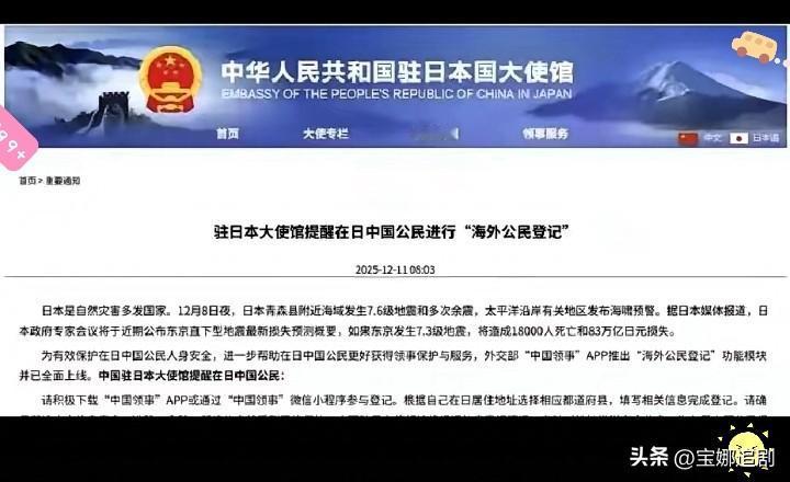 中国清点在日华人,日本慌得直跺脚?这波操作根本不是“施压”,而是把真相摆到了明面上!12月11日驻日使馆号召同胞通过“中国领事”APP登记,本是保护同胞的常规操作,却戳中了日本的“软肋”。 要知道2024年底在日外国人超376万,其中87万多中国人撑起了日本的半壁江山——护理行业缺人,华人护工顶起大半养老院;精密制造缺才,华人工程师占外籍技术人才35%,丰田、三菱的生产线离了他们转不动。日本少子老龄化早已积重难返,本土劳动力缺口达百万级,华人明明是来补窟窿的,却被部分右翼炒作“威胁论”。 更讽刺的是,它对驻日美军的胡作非为忍气吞声,对中国的领事保护却跳脚抗议,本质是依赖又不敢承认。日中经济协会都急着劝内阁“别瞎折腾”,毕竟华人创造的GDP比冲绳全年还高。 其实中国登记人数,核心是护同胞安全,日本慌不慌,全看它能不能认清现实:善待华人、搞好合作才是生路,再跟着炒作对立,迟早把自己的经济根基作没!