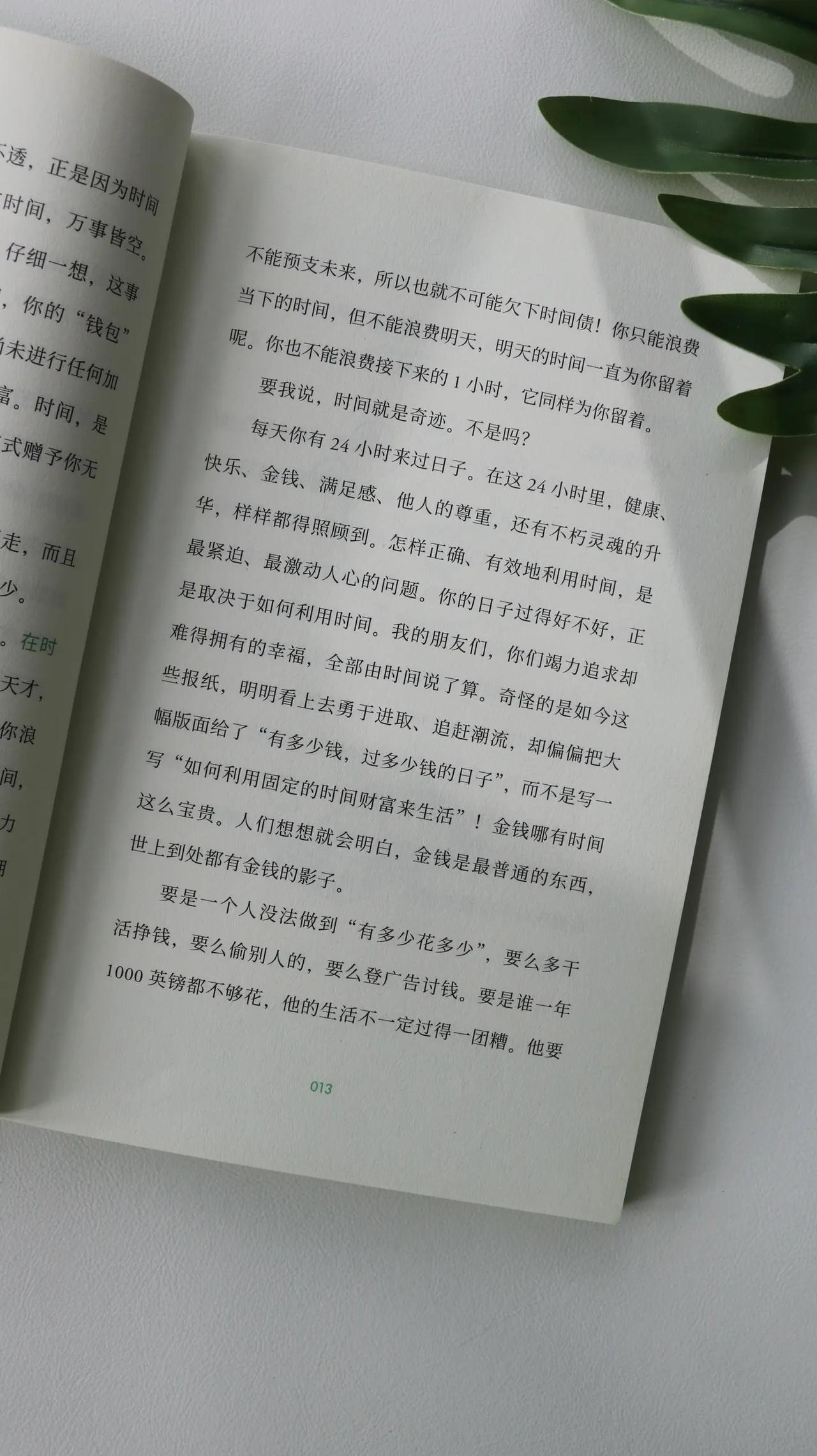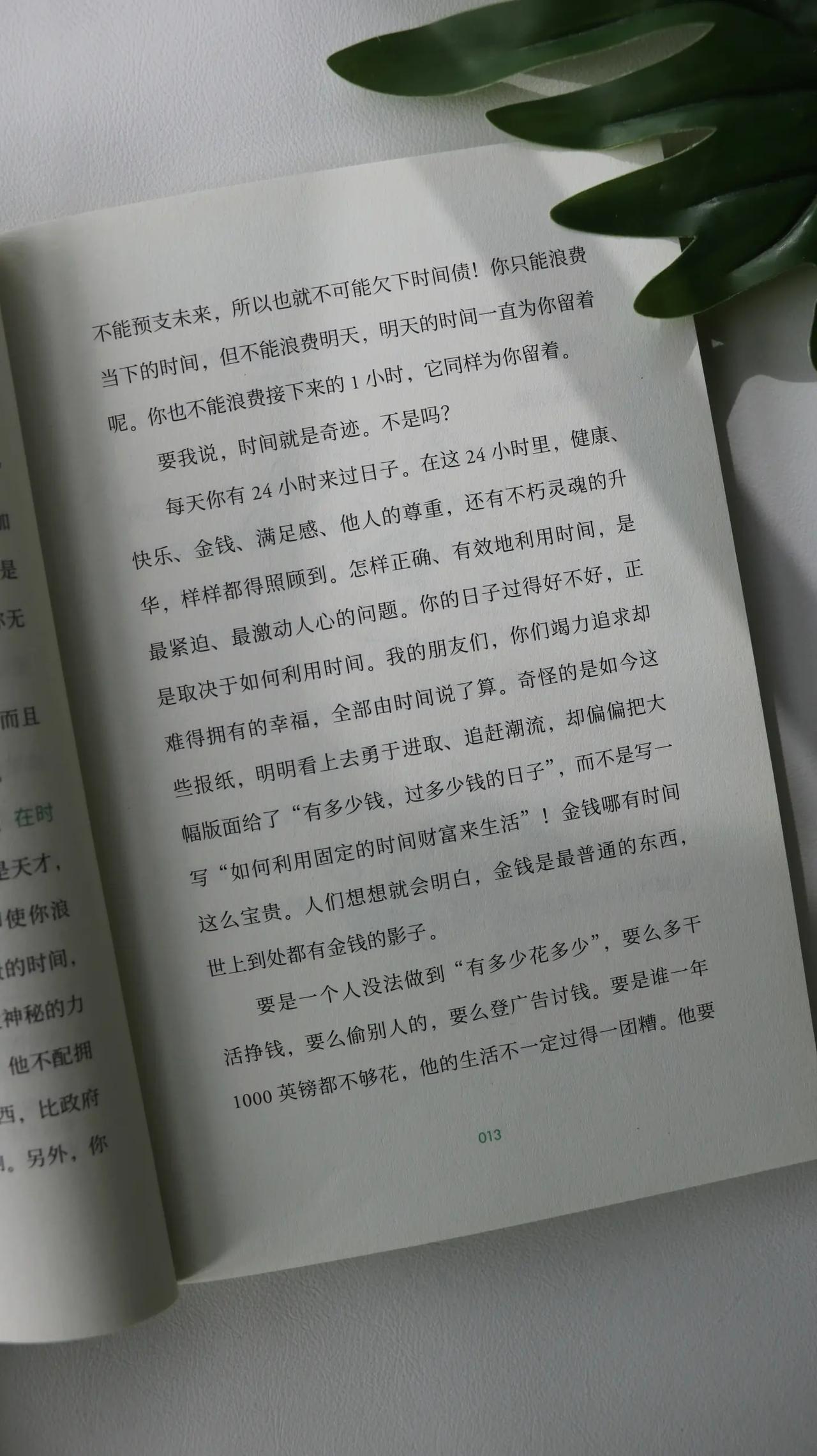 【如何度过每天的24小时】:是作家阿诺德·本涅特的经典时间管理类作品,并非复杂的理论说教,而是从普通人的日常出发,拆解时间利用的底层逻辑。1. 时间的平等性:每个人每天都拥有24小时,成功与否的关键不在于时间多少,而在于对时间的利用效率,打破“没时间”的借口。2. 破除时间误区:人们常把忙碌归咎于工作,却忽略了通勤、休闲、无意识消遣等碎片时间的浪费,作者指出“真正的时间流失在琐碎的惯性里”。3. 主动规划时间:强调要为自己的一天制定清晰的安排,哪怕是每天抽出1-2小时用于自我提升(阅读、学习、思考),长期也能带来巨大改变,而非被动被生活推着走。4. 重视“精神时间”:反对将时间仅用于物质层面的奔波,主张留时间给精神成长,让生活兼具效率与深度。读书