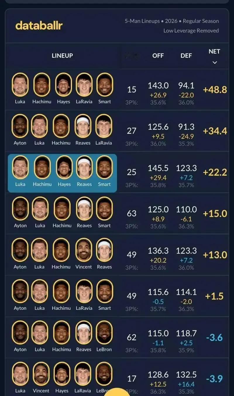 不敢相信,湖人这是才吃多少顿饱饭啊? 居然,有人说,东契奇是d瘤球员。 天呐!你说,他这种打法,夺冠很困难,我相信。 但是,你说,他d瘤,双手双脚不同意的。 东契奇就是一个运动能力差点,但是,技术节奏更好的詹姆斯。 在湖人,东契奇完全地证明了自己的,上个赛季,西部第三。 虽说,被淘汰掉了,但,问题不在他。 这个赛季,不是他状态出色,湖人能一度到西部第二的位置。 如今,湖人自从詹姆斯复出之后,问题也开始逐渐地凸显出来了。 还是那句话,在詹姆斯身边打球,除了欧文之外,难有人能善终。 不懂我为什么这么说?如今,在湖人阵营之中,到底谁才是d瘤,看高阶数据,一目了然。