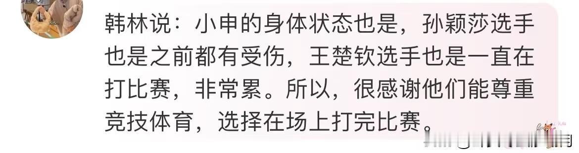 当他们决定上场的那一刻就已经赢了,他们对得起任何人! 哪怕明知道可能会输也会上场的!以他们的性格宁可站着死也不会跪着输的! 退赛单打,脚疼的不能跑动,为了团队荣誉,尊重比赛,尊重对手, 还是选择坚持比赛,站到了混双决赛的场上,输赢又有什么关系?他们已经做到了最好! 强者会惺惺相惜,而我们很多不理智的人,一直在骂动漫,骂领导,骂王楚钦没有更多分担,打的不好! 可你们不是第一天看比赛啊,头哥自己也是残血! 今晚一板过强行加质量,输了分算自己, 我来挨骂,得分了算两个人的,能看懂的就知道他真的很有担当了 [赞][赞][赞]