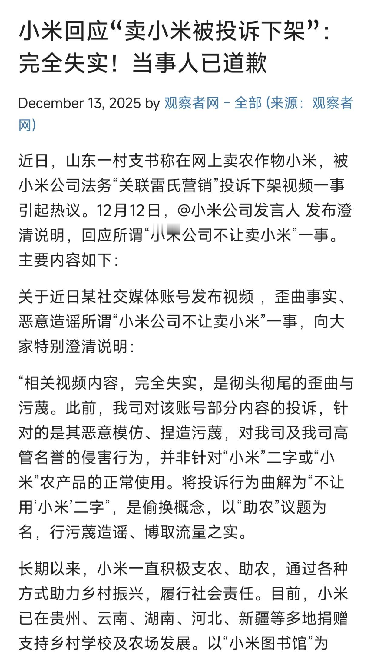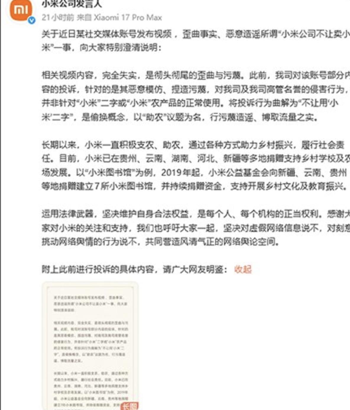 小米回应“卖小米被投诉下架”:完全失实!当事人已道歉!这事你怎么看?积极理性讨论!
