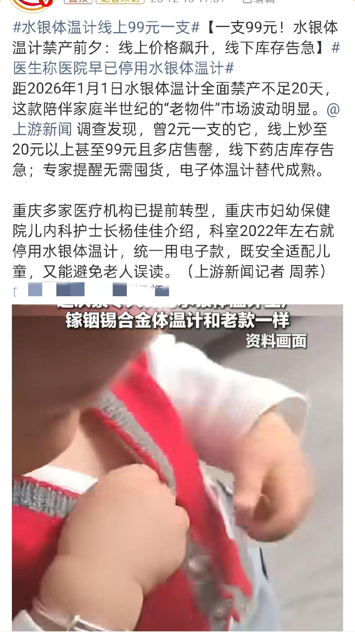 水银体温计价格飙升,一支99元! 明年1月1日,水银体温计就要停产了。 我记得一