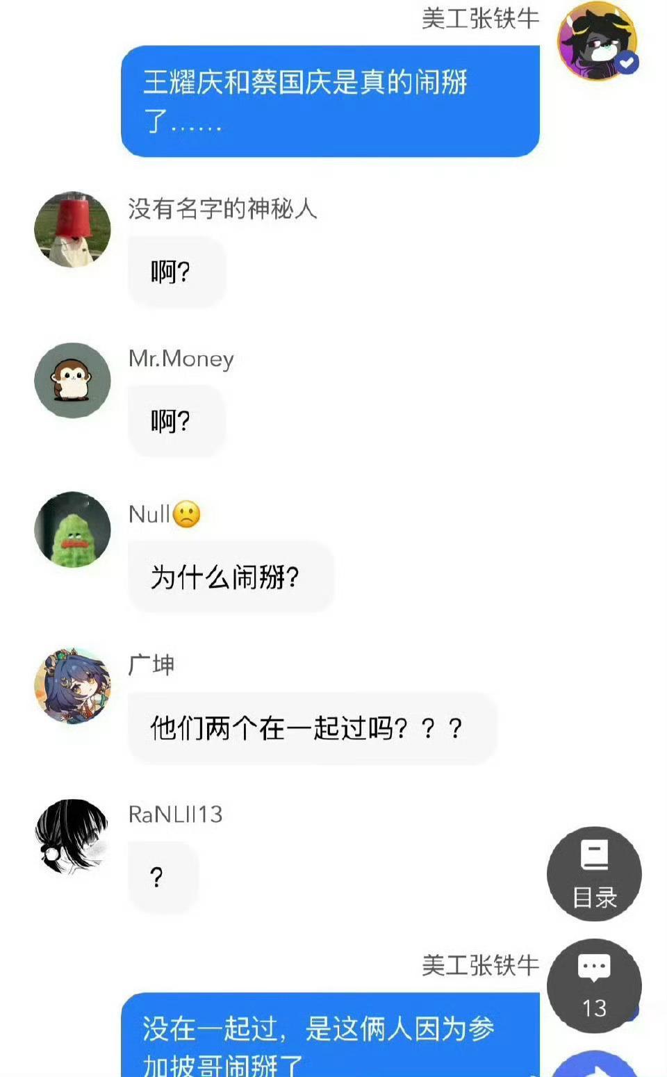 曝王耀庆蔡国庆披哥后就闹掰了。 记得看披哥3时,印象最深的就是王耀庆满眼里看不上蔡国庆,因为他想要年轻的能唱跳的伙伴。 一开始蔡国庆没意识到。 王耀庆起先是串掇蔡国庆去了陈楚生的队伍,打乱了0713的组合,没想到楚生是用真心对待蔡国庆,尊敬又用心。 后来王耀庆碍于面子收纳了蔡国庆,结果明里暗里满是嫌弃,与楚生做法简直就是两种待遇。 所以说,看到这样的小道消息,我觉得是真的。