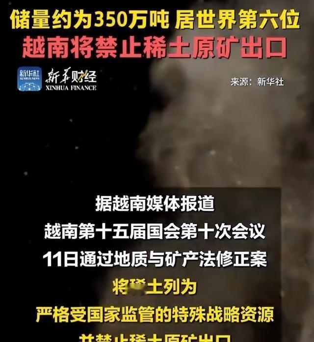 禁止出口稀土原矿!近10年来,越南的战略目光看得越来越远了,从最改革开放初期时,什么都可以放开,到后来一步一步的收紧矿产资源采,出口。 越南经济这些年涨得快,早些时候矿业对外资敞开大门,很多境外企业进去承包矿区,开采各种资源直接运出去。那时候边境贸易热闹,原矿石容易过关,带动了当地一些就业,但资源外流也挺严重。时间一长,越南政府觉得光卖原料赚不了大钱,开始逐步调整政策,先限制一般矿种的外资承包,后来检查越来越严,正规渠道运原矿越来越难。现在基本只剩一些加工后的金属产品能顺利出口,这变化让越南对自家资源握得更紧。 稀土这东西不一样,它是高科技材料的基础,美国地质调查局2025年报告显示,越南储量350万吨,排全球第六。以前数据高得多,2200万吨那种,但今年大幅下调,因为很多是远景储量,没实际勘探确认。12月11日,越南国会通过地质与矿产法修正案,直接把稀土定为国家严格监管的战略资源,从2026年1月1日起禁原矿出口。修正案规定,所有勘探开采加工都得跟国家规划走,只有政府指定的企业才能干,地质数据中央管,贸易也规范,还得留储备。 其实越南早几年就禁稀土原矿出口了,至少从2021年起,这次是重申加码,还间接限制精炼产品出口,要求深加工必须连着本土工业链条发展,提升本地价值。短期看影响不大,因为越南现在精炼产能几乎为零,年产量才几百吨。但长远是想留住高利润环节,不再光挖土卖钱。 这步棋走得有道理,稀土挖出来不加工就便宜得很,加工成磁材啥的利润翻好多倍。中国当年也这么干过,先禁原矿出口,逼外资来建厂,顺带学技术,现在链条全在手里,全球九成加工产能。中国稳稳占据主导,越南想复制路子,吸引投资建分离厂啥的。加上美国这些年到处找替代供应链,2025年10月美越还签了稀土合作框架,美国给技术投资支持越南开发。 不过话说回来,稀土加工不是说搞就搞的,中国玩了几十年才掌握全套,从酸浸萃取到精炼,每步都烧钱,还得有化工冶金基础、环保配套、电力稳定。越南目前这些底子薄,电力时不时停,环保执行也松,短期建起规模产能难。全球需求在涨,新能源电子军工都离不开稀土,但中国产能质量成本优势大,越南就算抢点份额,也动不了根基。 越南这政策,一方面护资源升级产业,另一方面也借机要好处,美国需要分散风险,越南有矿,正好一拍即合。农业与环境部在弄国家稀土战略,明年初提交,估计会鼓励国际合作,但重点还是本土自给。总的看,这事对全球供应链是小调整,中国话语权还在,越南慢慢来,能走多远得看执行。资源国都得算长远账,越南这眼光越放越远,也正常。