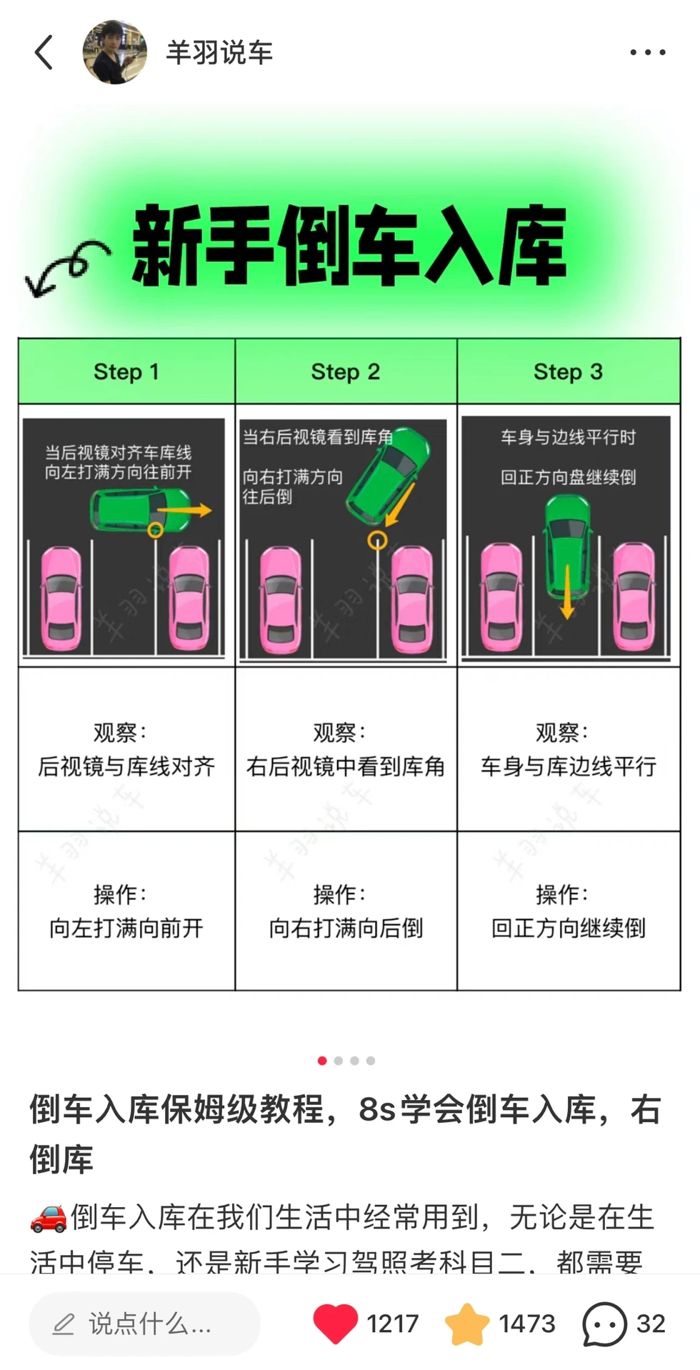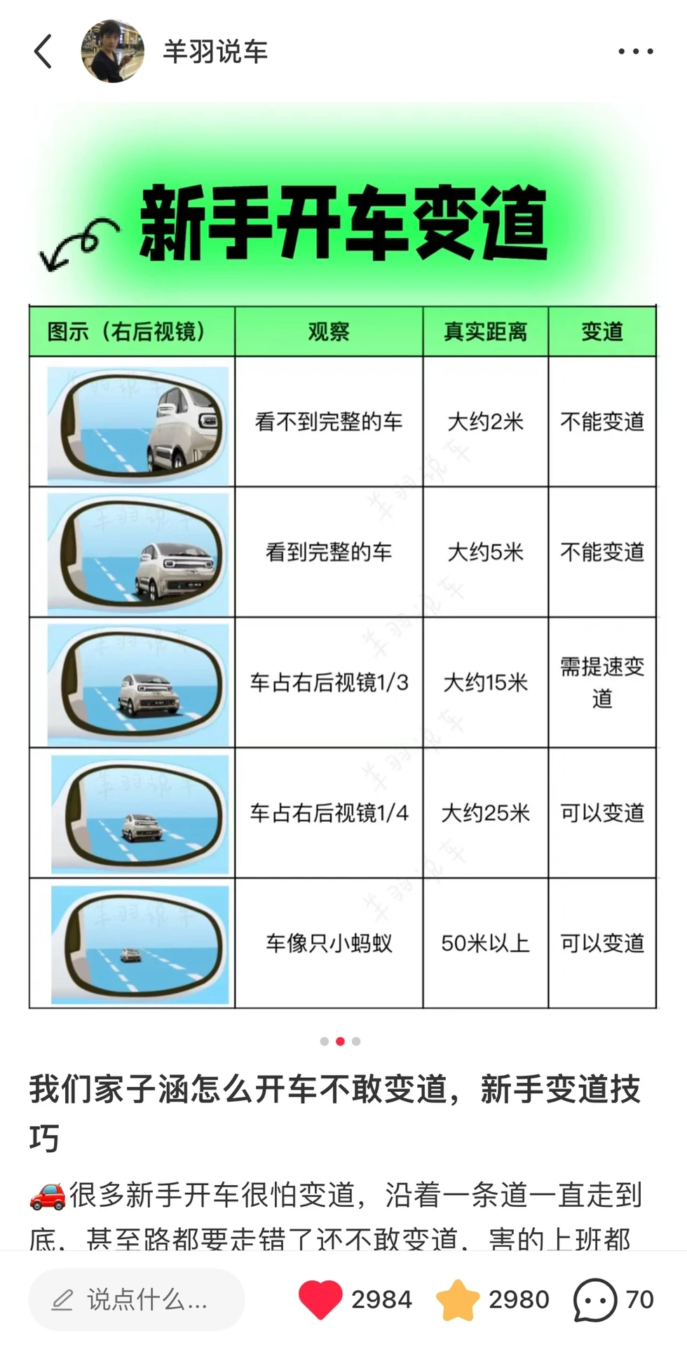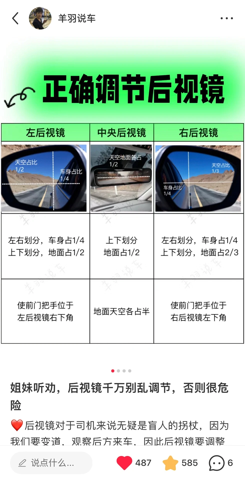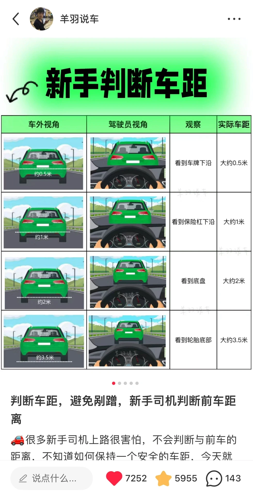 ❤️前段时间分享了汽车的开车技巧,但是比较分散,今天做了一个整合,目的是让大家更方便的查看。 🚗无论是正在考驾照,还是刚买完车不久的姐妹,这些技巧还是很有帮助的! 1⃣️判断车距,前车车距如何判断,防止追尾。 2⃣️倒车入库技巧,如何倒车入库一把进。 3⃣️侧方停车技巧,新手不会侧方停车怎么办。 4⃣️变道技巧,新手如何判断变道时机。 5⃣️提升车感技巧,判断左右车距,过窄路,窄桥等 6⃣️如何调节后视镜,视野更开阔。 以上就是今天的分享,我是,主页还有更多汽车知识,愿大家快乐度过每一天。