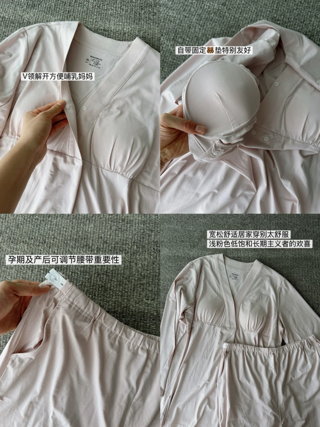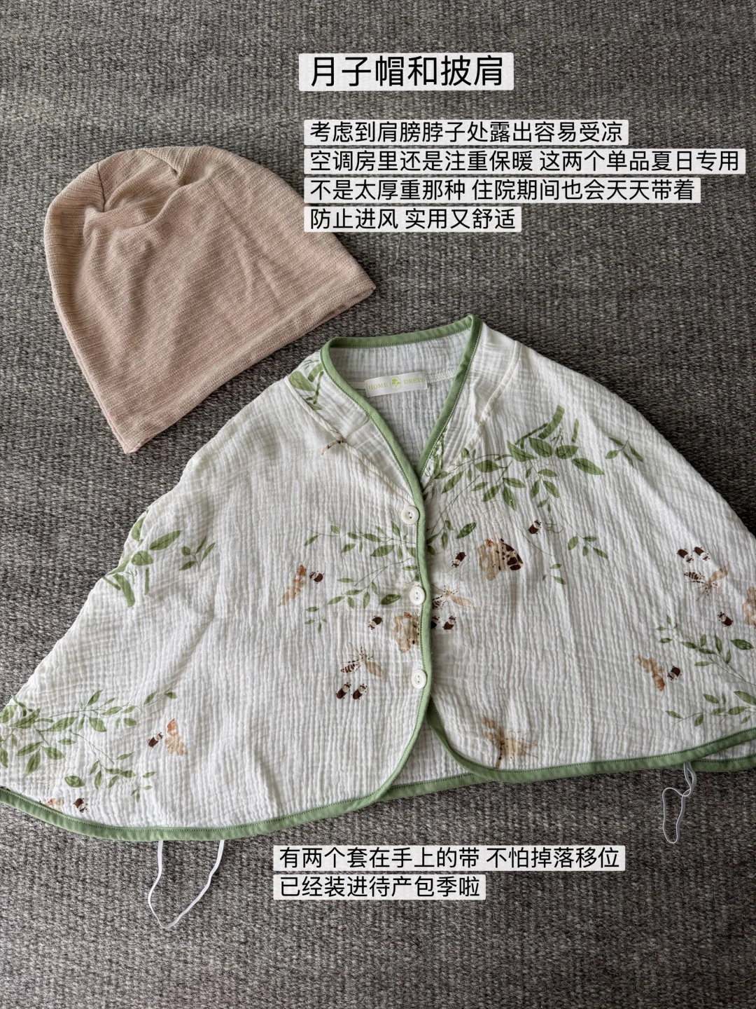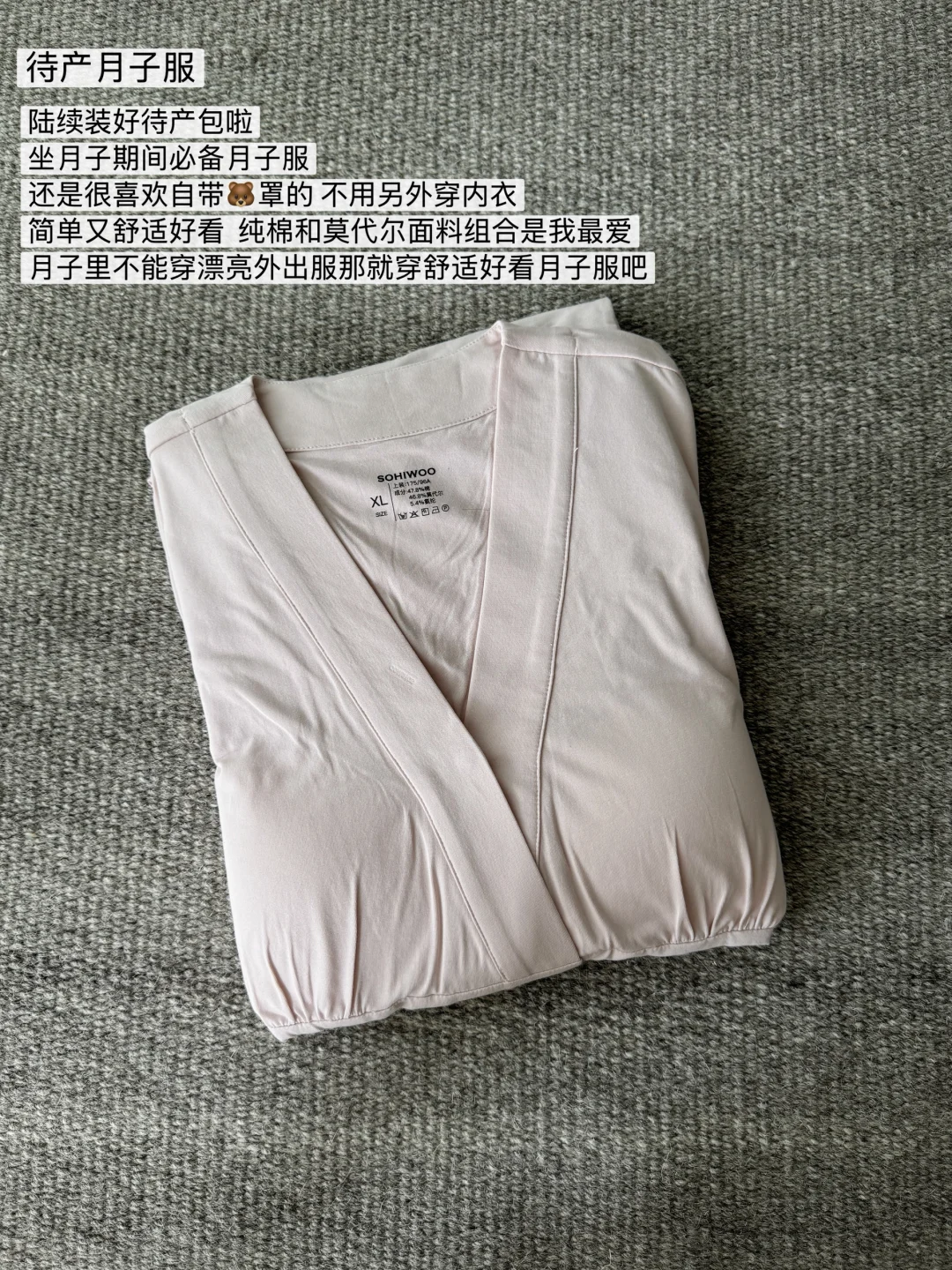 孕36周 待产包准备好了(看上一篇) 也入手了月子里要穿(用)满意单品 舒适和好看兼得 出了月子后持续穿 长期主义就在于长久的陪伴 ~哺乳内衣 孕期开始就转型穿sohiwoo的哺乳内衣 比孕前穿的内衣更舒服 也更贴合孕妇的情况 基本现在睡午觉有时候不脱也不勒不闷 能给你轻柔的拖着缓解下坠感预防下垂 有哺乳扣月子产后母乳的话也能继续穿 很方便 ~月子服 和内衣同一家的低饱和粉色真的很温柔 面料更是舒适 莫代尔和纯棉面料的组合 夏天穿都不会觉得闷热黏腻 细节上给产后姐妹一份舒适与方便 有🐻垫、哺乳扣的安心、无领的清爽… 谁说产后就要狼狈?可以干净、舒适和坦然 ~勃肯鞋(月子鞋 没专门去入月子鞋 经常穿的勃肯也可以 直接穿去医院待产 不仅舒适还很保暖 等待出月子后也穿勃肯下楼遛娃 ~月子帽和披肩 考虑到肩膀脖子处露出容易受凉 空调房里还是注重保暖 这两个单品夏日专用 不是太厚重那种 住院期间也会天天带着 防止进风 实用又舒适