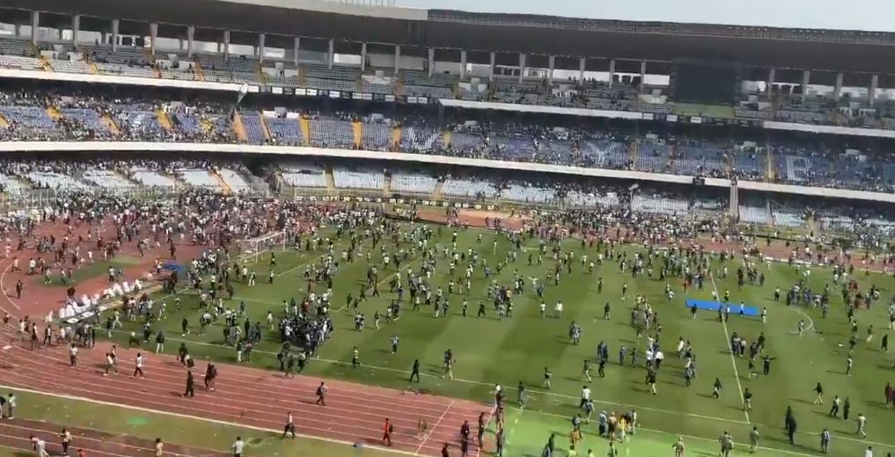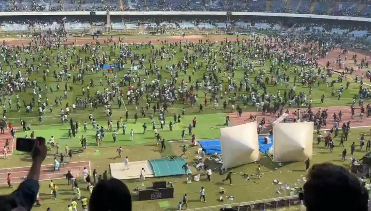 【🤦真丢人!在印度愤怒的梅西球迷正在加尔各答的盐湖体育场进行破坏。印度球迷非常愤怒,因为这位足球运动员只出现了10分钟——他们甚至都没能好好看看他。】