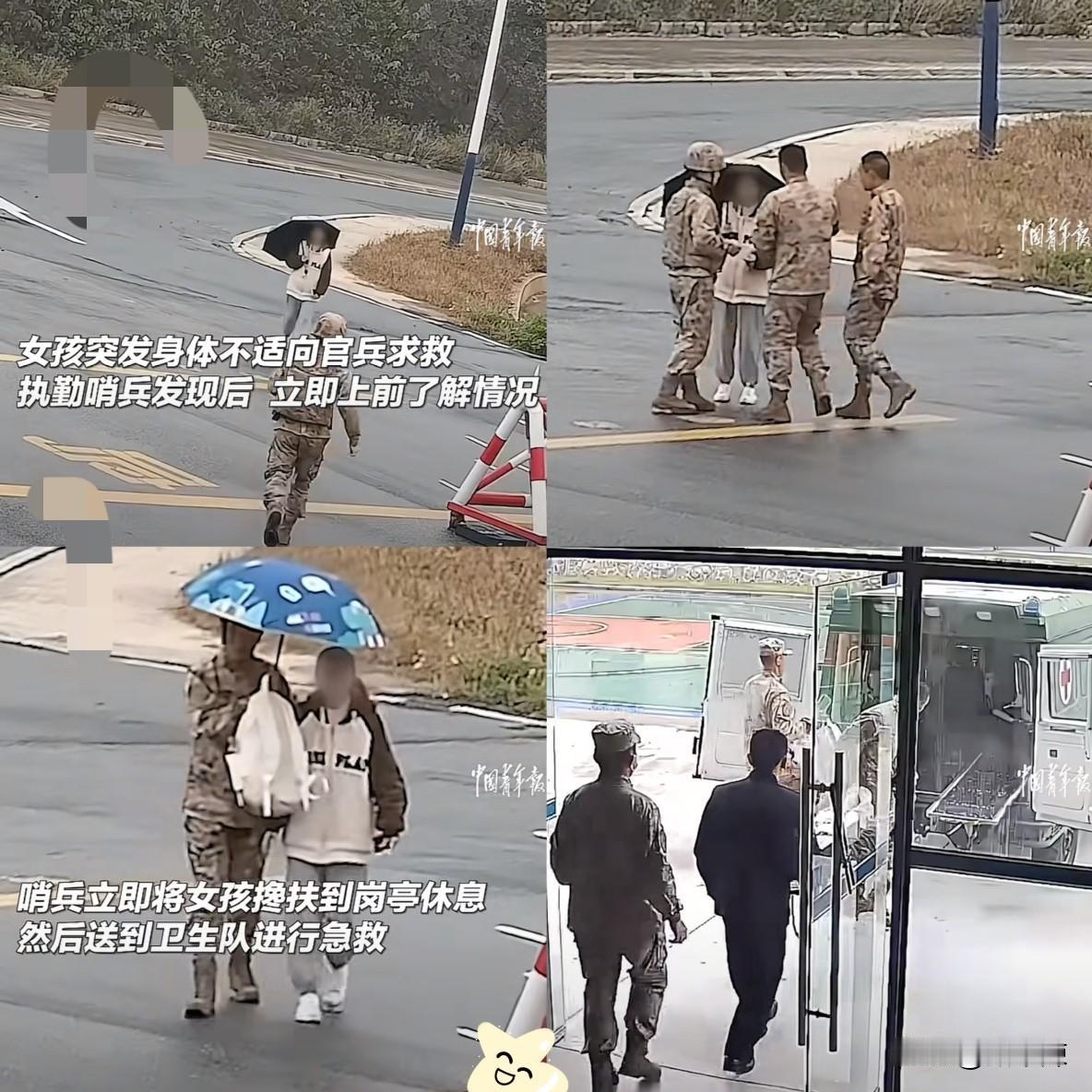 “太幸运了!”火箭军某部,一女孩打着雨伞路过军营,突然,她踉跄着走向执勤哨兵, 哨兵起初以为有异常,凑近才发现女孩脸色煞白、嘴唇发紫! 立马扶住她喊来战友,不到一分钟军医就赶到,后续用救护车紧急送医,总算化险为夷! 网友说得对,你永远可以相信人民子弟兵!他们的守护从不是只在战场,更多藏在日常的急难时刻里! 这份“随叫随到”的可靠,不是运气而是底气——是日复一日的训练和坚守,让他们在关键时刻能秒响应、快处置! 这才是最生动的国防教育,让我们知道危险时总有坚实后盾! ​为人民子弟兵点赞!为女孩的机智点赞!