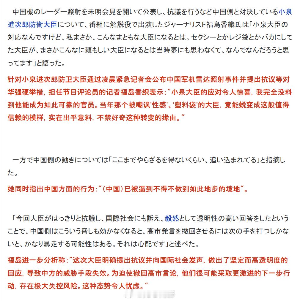 日本又在赢~日媒标题:小泉大臣→与中国的暴力行为正面对决 “曾因塑料袋问题被当成傻瓜的大臣,没想到会变得如此可靠” 女性专家也赞不绝口→但也担忧中国被逼急后可能失控。小泉进次郎明明是接二连三的撒谎被抓包,日本网民自己都看不下去,媒体居然都能强行赢到这种程度,好好好,赢学不愧是新时代的全球第一学问。海外新鲜事中日外交局势