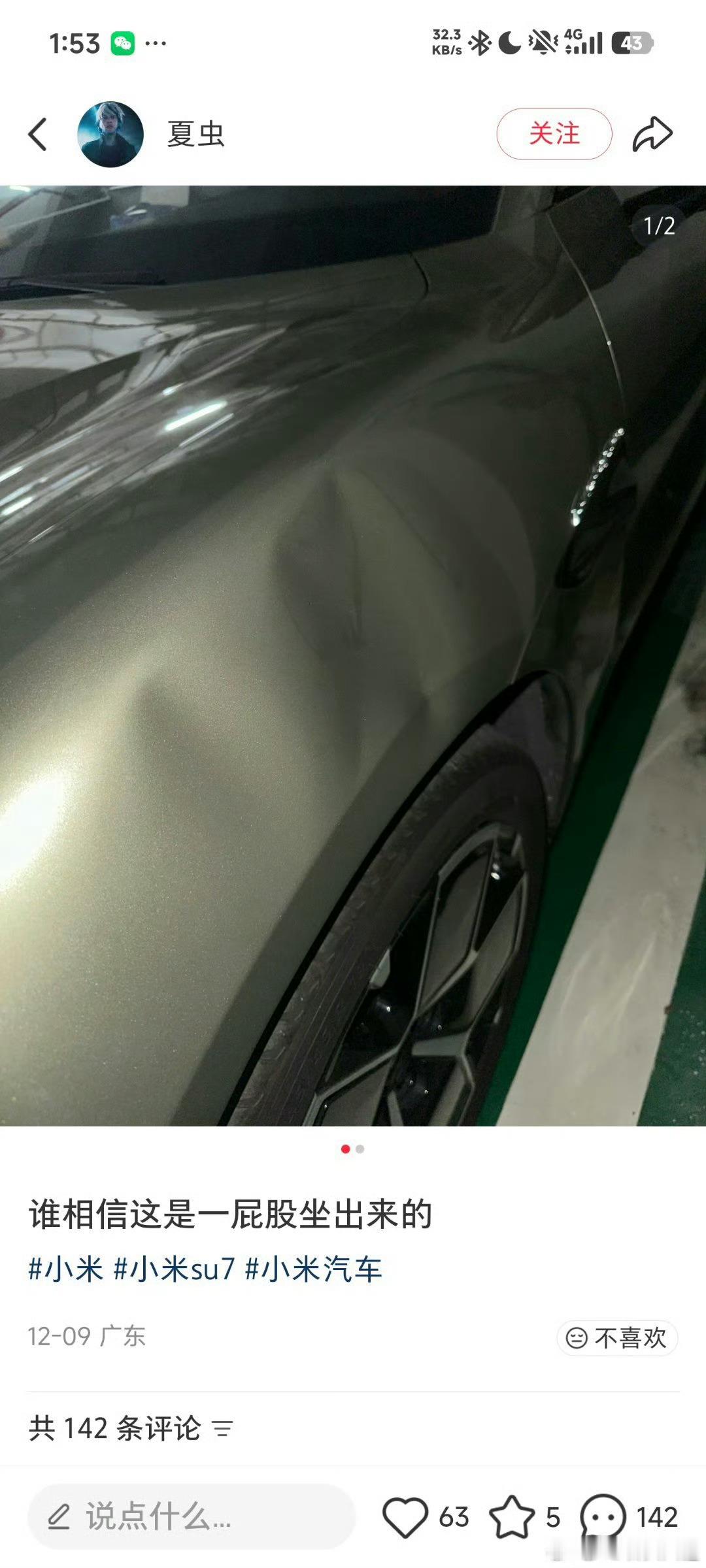 得是多少斤的人,才能一屁股把车坐成这样?小米SU7没有那么脆弱…