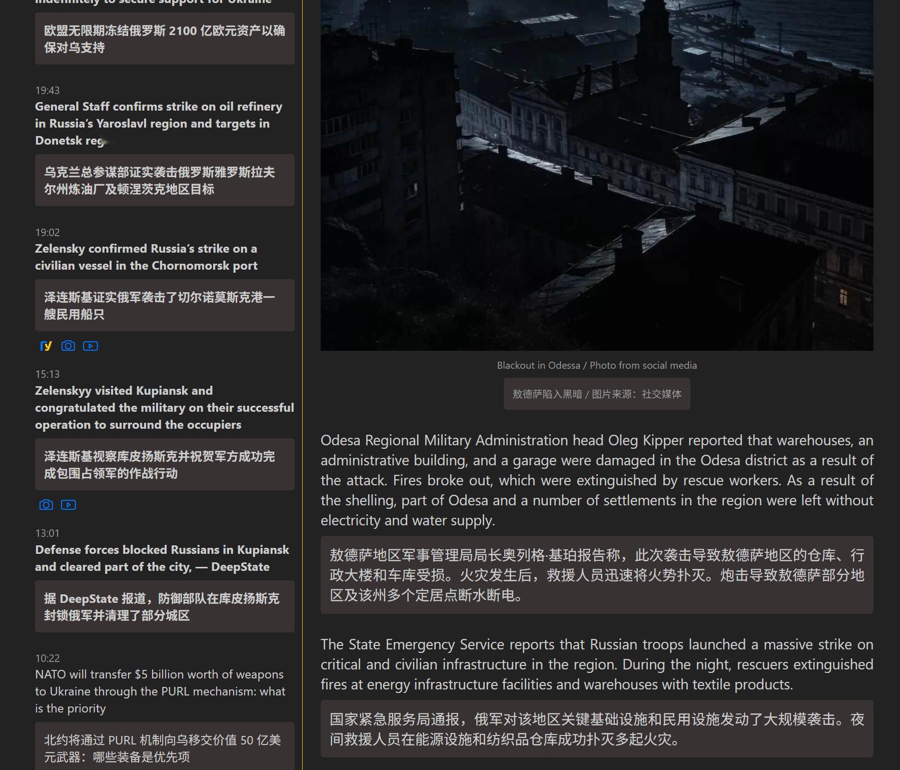 🔻RT、glavnoe.in.ua 等俄乌媒体共同报道,“犹如恐怖片场景”——敖德萨彻夜遭袭后陷入全面停电🔻乌克兰媒体发布这些照片后,随即引发是否 AI 合成的争论。🔻根据当前的月相看,虽然这些照片很可能是伪造的——但敖德萨市大面积停电却是千真万确的。热点现场海外新鲜事俄乌冲突