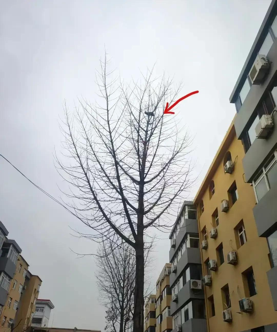 一号楼业主家那只叫旺仔的猫,两天之内把同一棵树爬了两次,次次卡在十米高的枝丫上装