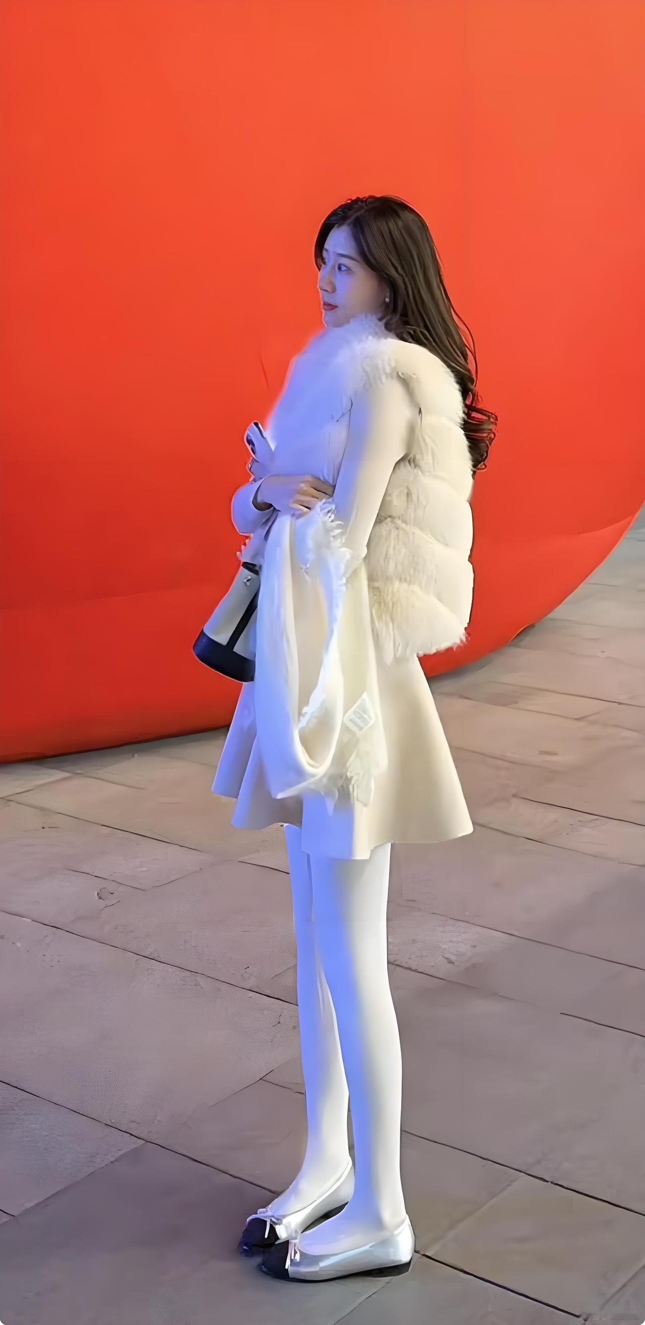 优雅冬日穿搭,白色连衣裙与毛绒外套的完美搭配,时尚又温暖。