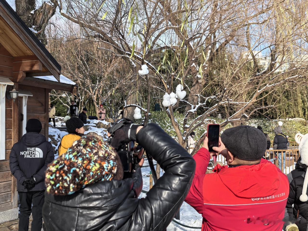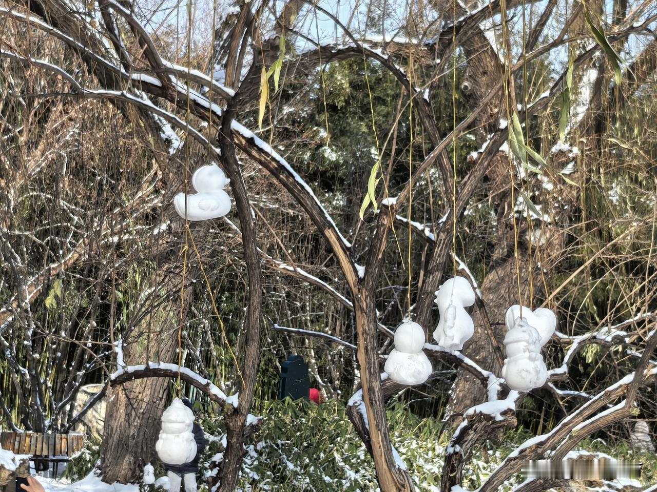 紫竹院公园里雪做的小动物成为游客的新宠。