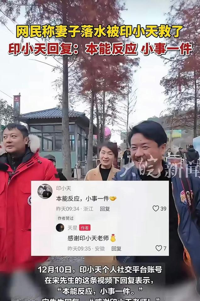 救完人,他差点被当成“外籍人士”。 落水女子的呼救撕裂片场的安静,印小天甩掉外套就跳。 捞起身体,拧干外套,整套动作没超过三分钟。 等围观群众想拍照,他已经退到人群后,头发滴着安徽冬天冰凉的河水。 宁国市,不是国外,是安徽一个小城。 他在这里拍一部没什么宣发的新戏。 当地政府反应过来要表彰时,他早就回到镜头前,好像只是顺手捡了个东西。 业内都知道他这十年:戏不多,但从不敷衍任何一个配角。 口碑在导演圈里沉甸甸的,只是流量榜上静悄悄。 这次救人也是,本能反应,没想过要上热搜。 这个时代的演员有两种:一种活在热搜的剧本里,一种活在生活的本能中。 印小天用一池冰水提醒我们:英雄主义从未退场,它只是换下了戏服,在你看不见的角落随时待命。 他不是在镜头前演英雄,而是在生活里做真人。 河水很冷,但有些人的血,从未凉过。