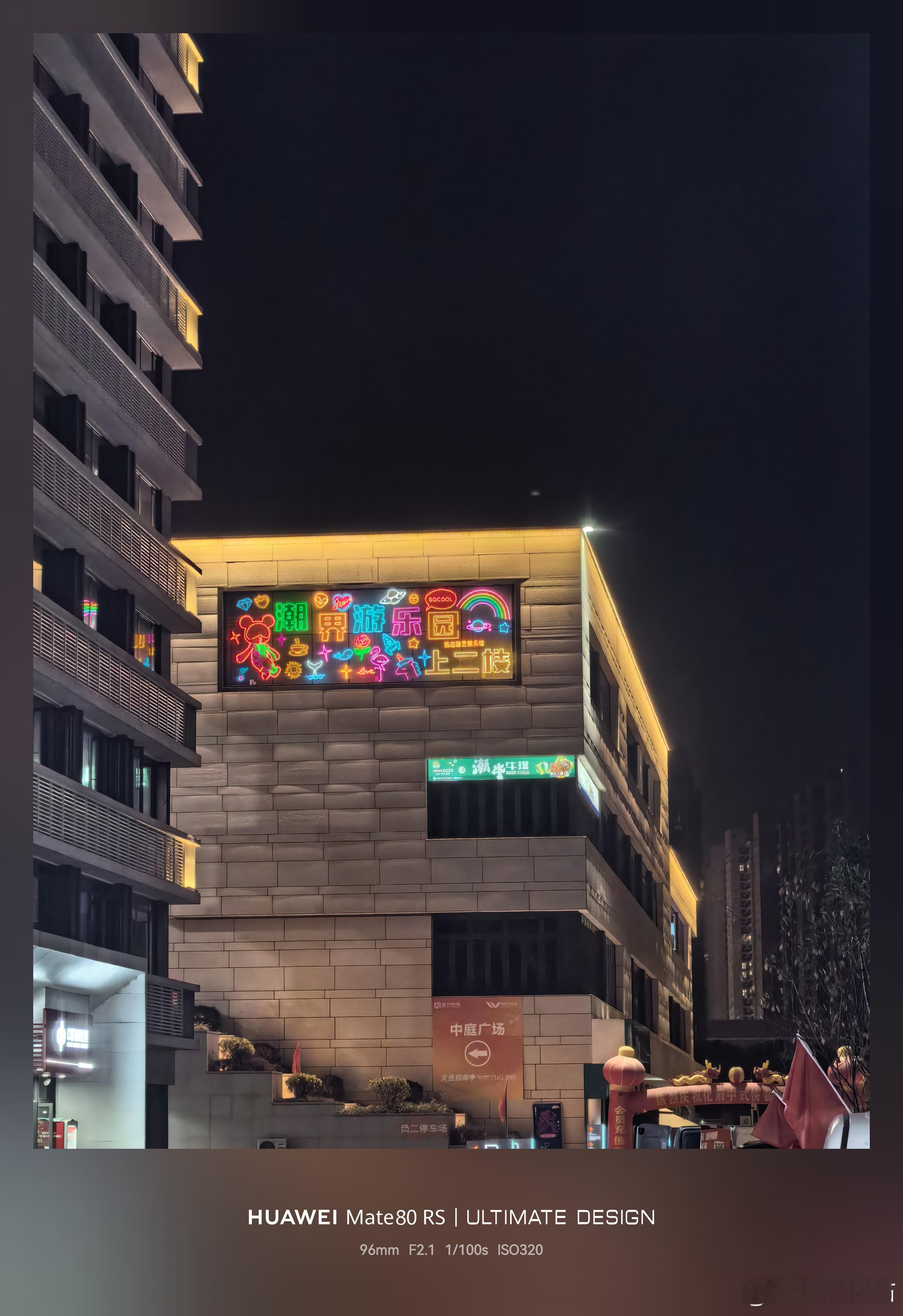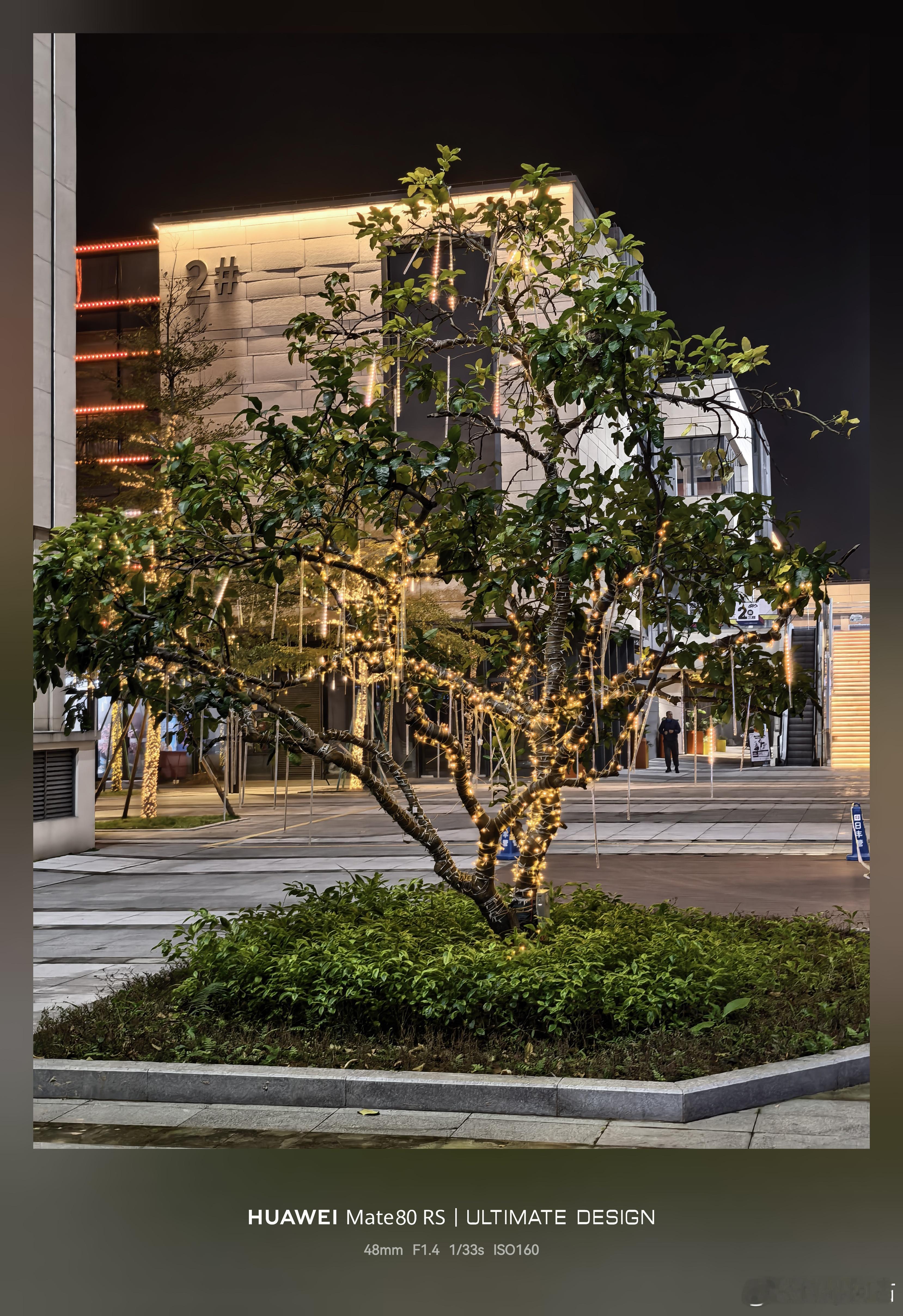 晚上用Mate 80Rs在家楼下随手拍了几张图一夜晚天空处噪点很少,比较纯净天空与房屋灯光交汇处晕染均匀,涂抹感很少图二看灯牌,夜晚情况下高光压制很强颜色准确还原,不愧是二代红枫,宽容度很高如果是同款手机可以查看HDR 图三看树叶边缘,解析力很强,夜晚情况下也没有过度锐化的计算摄影味道每一颗灯珠压制都很完美暖色灯,绿色树叶,颜色还原非常完美从深绿到嫩绿再到被灯光穿透的黄绿这一代Mate80系列的拍照强的可怕完全没给Pura 80 系列留面子华为mate80rs非凡大师华为mate80