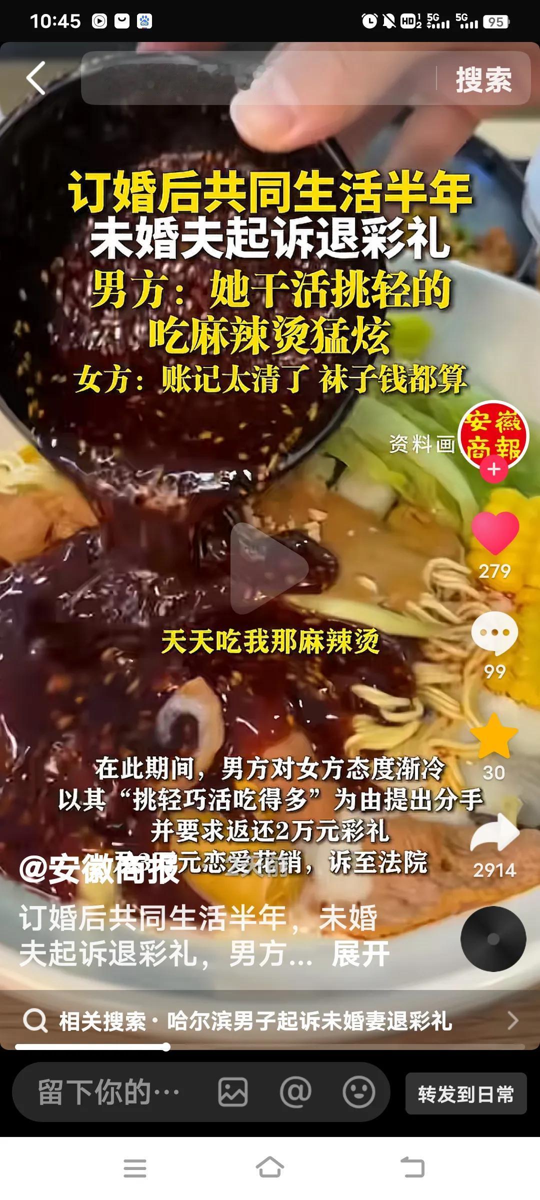 未婚夫起诉退彩礼的事儿还挺多,背后故事也各有奇葩! 黑龙江,哈尔滨一对小年轻情