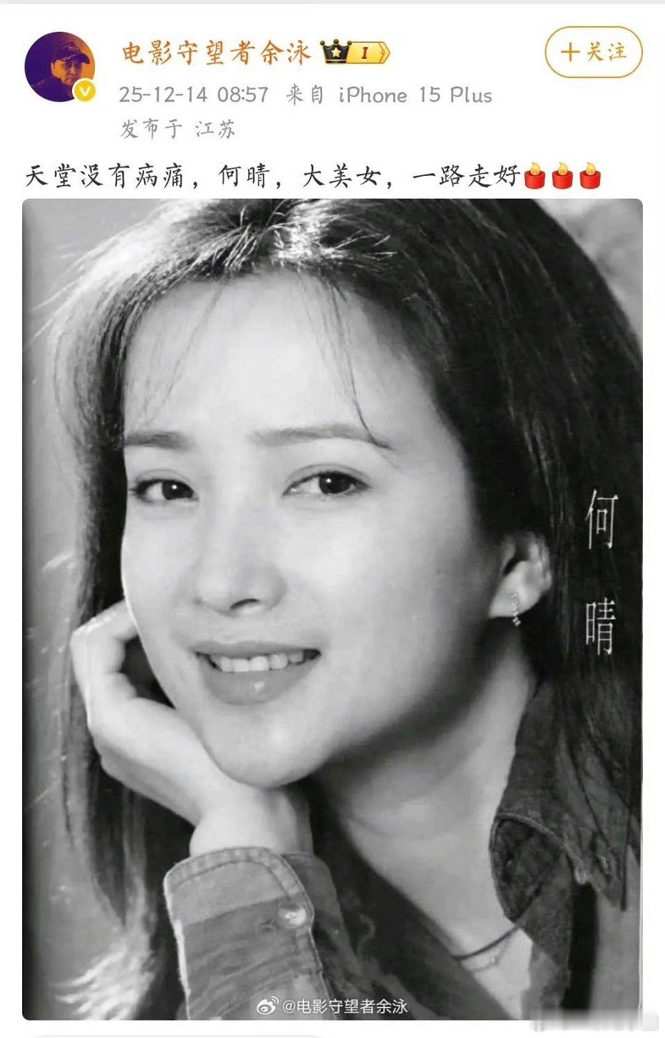 何晴去世了?我印象中她应该挺年轻,也就五六十吧。