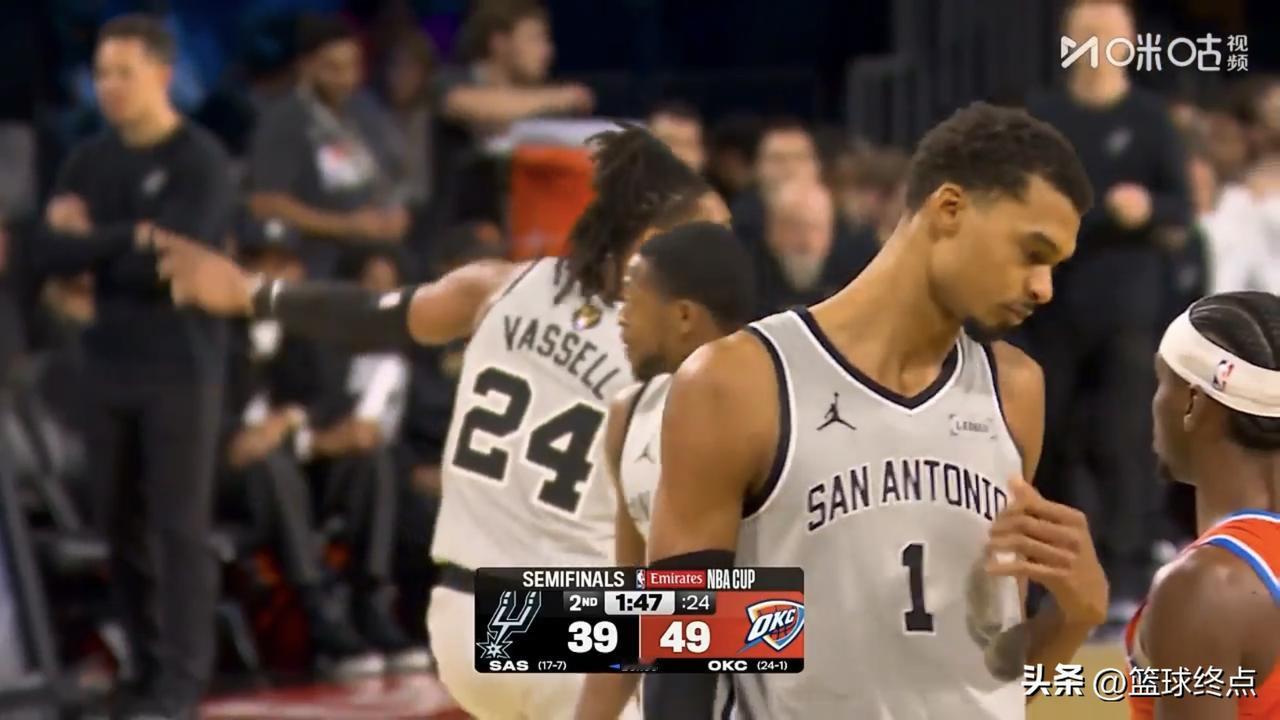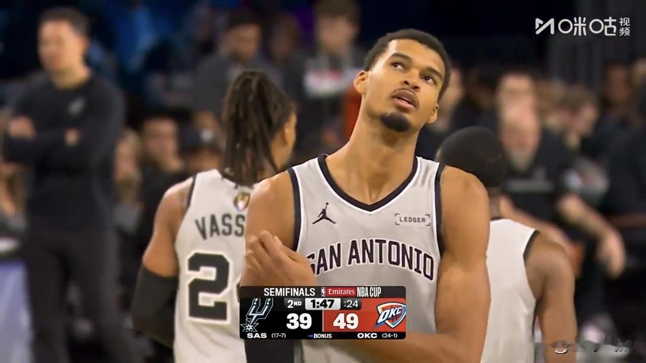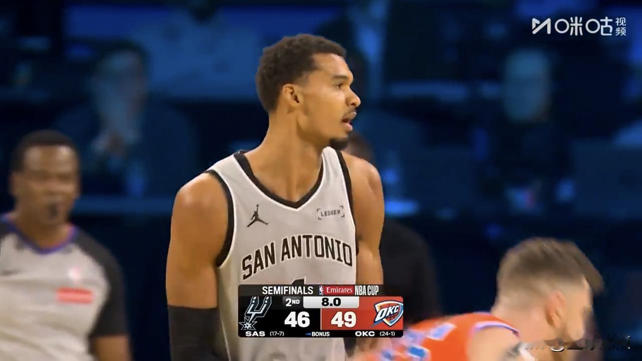 文班亚马上半场出场7分钟,正负值+20,文班亚马是马刺队的灵魂,上半场结束马刺队