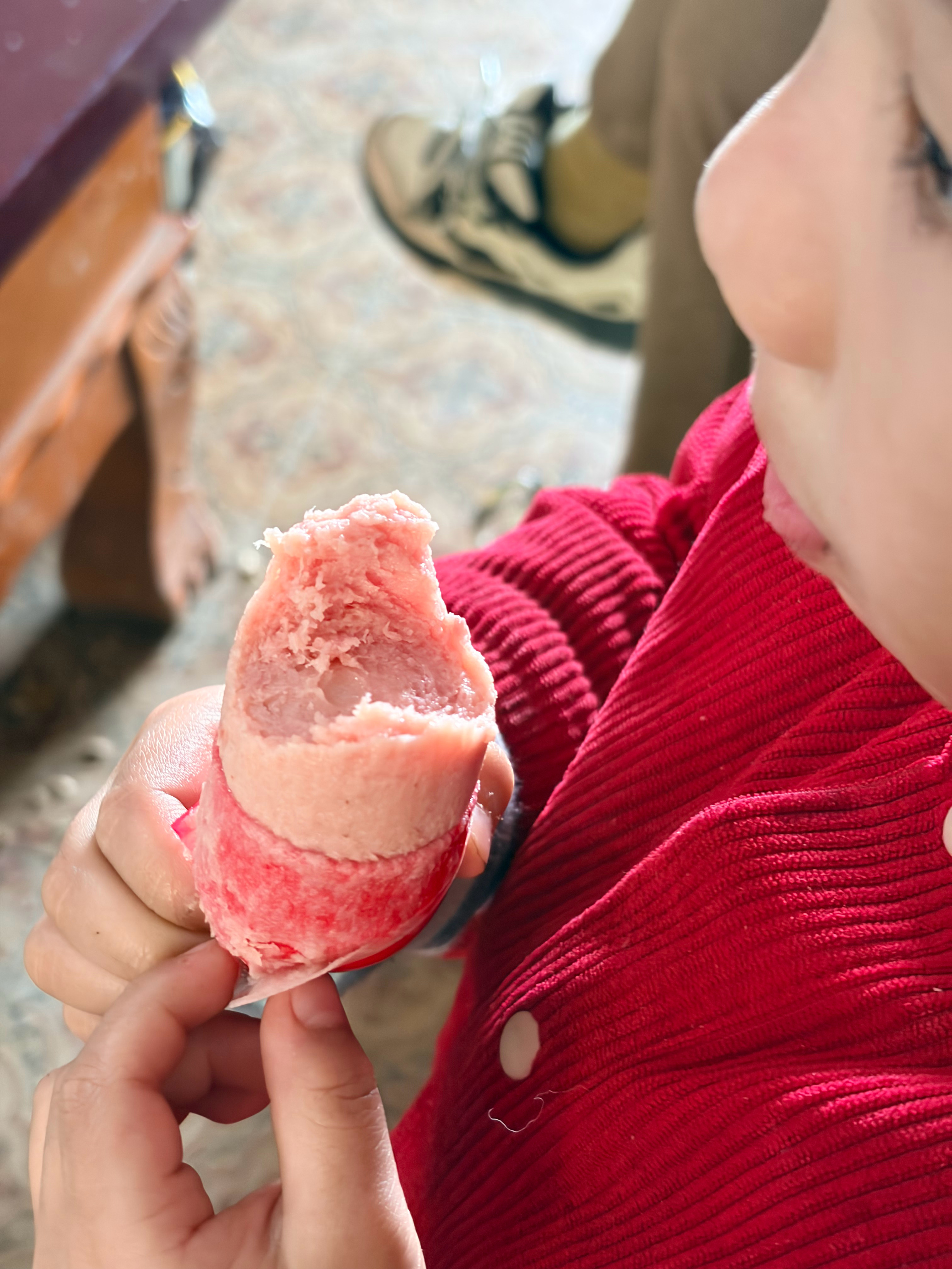 自己家昨天新宰杀的鲜猪肉去镇上灌的火腿肠,蒸熟了直接吃,简直美味啊,平时不爱吃肉的娃直接吃完一根。雾都奶爸