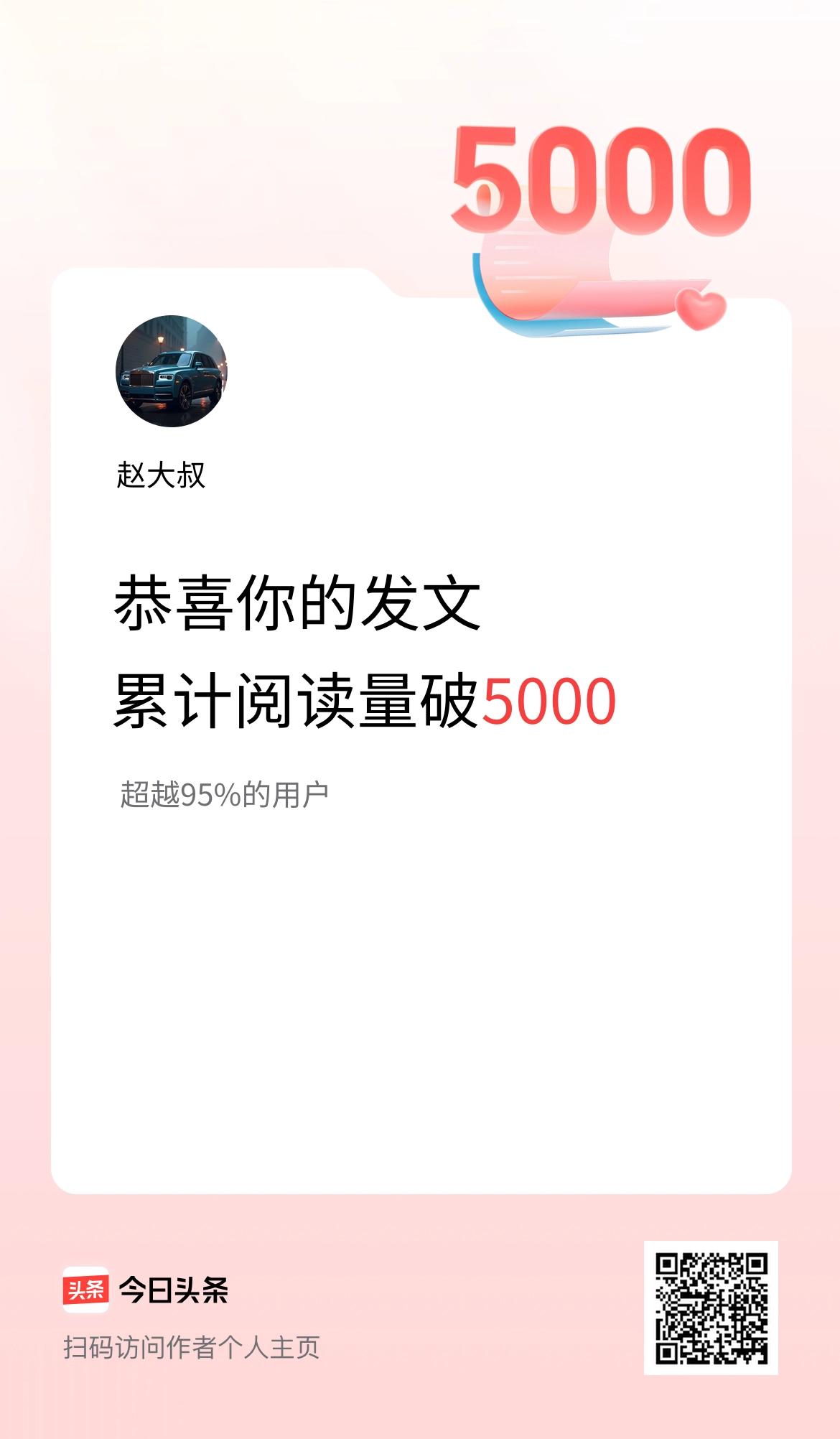 🤝我在头条累计获得阅读量破5000啦!