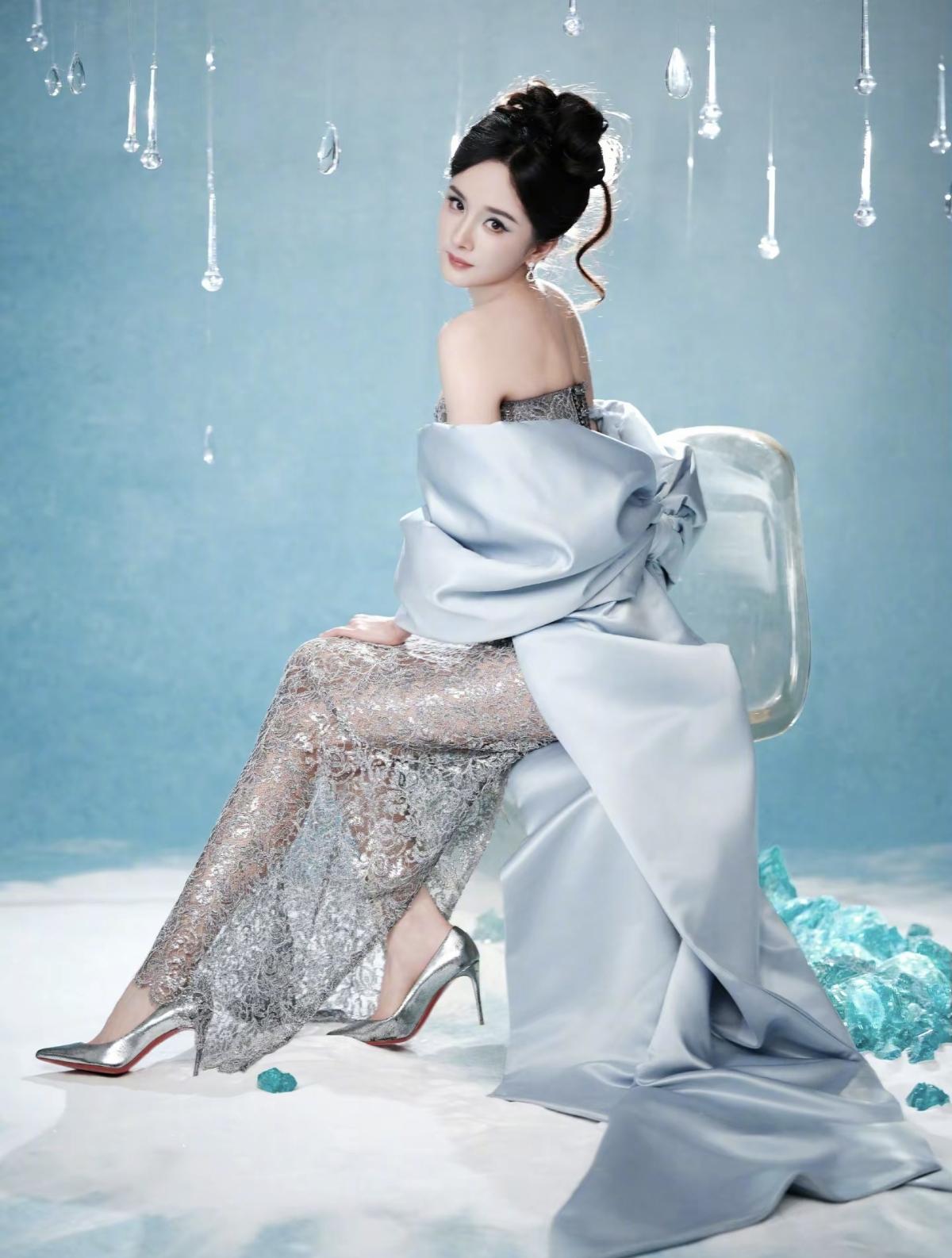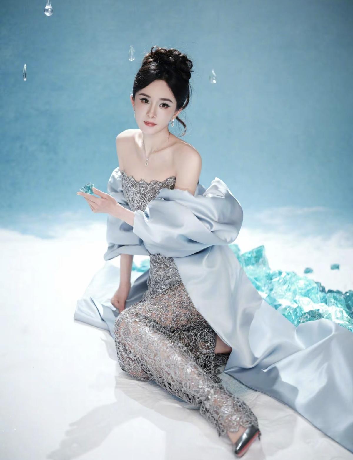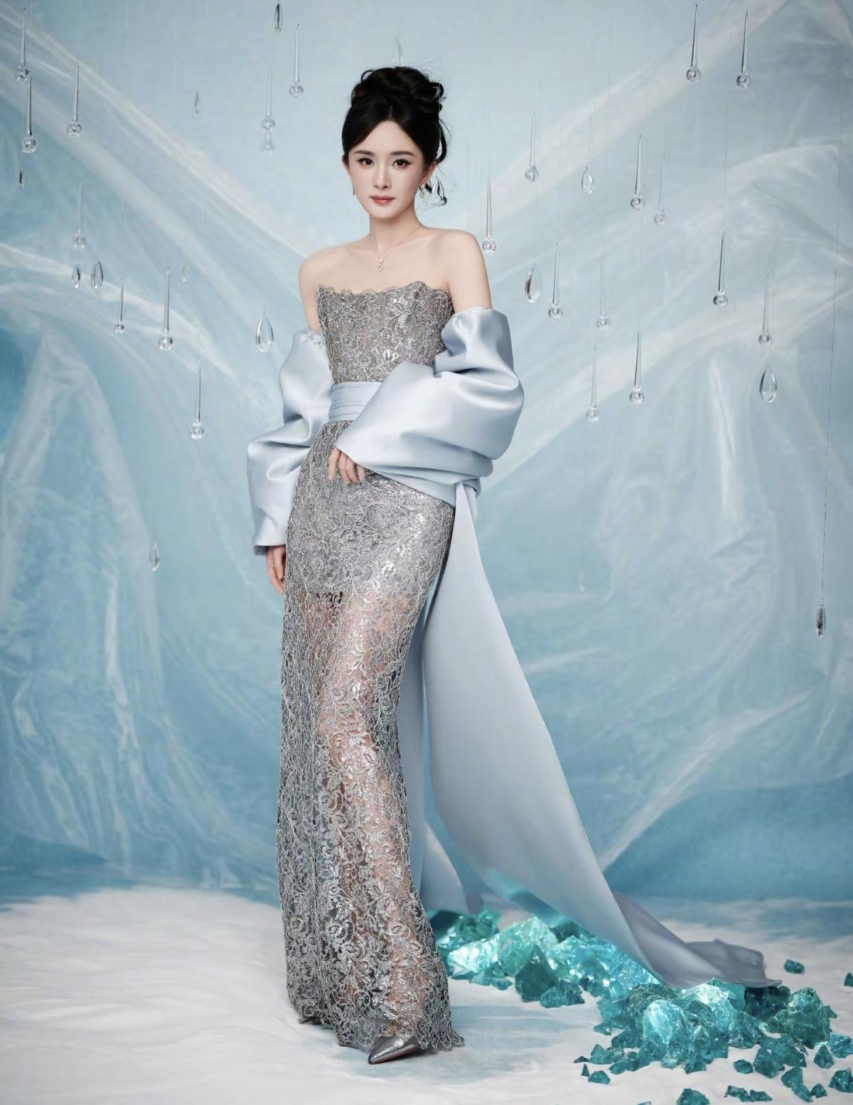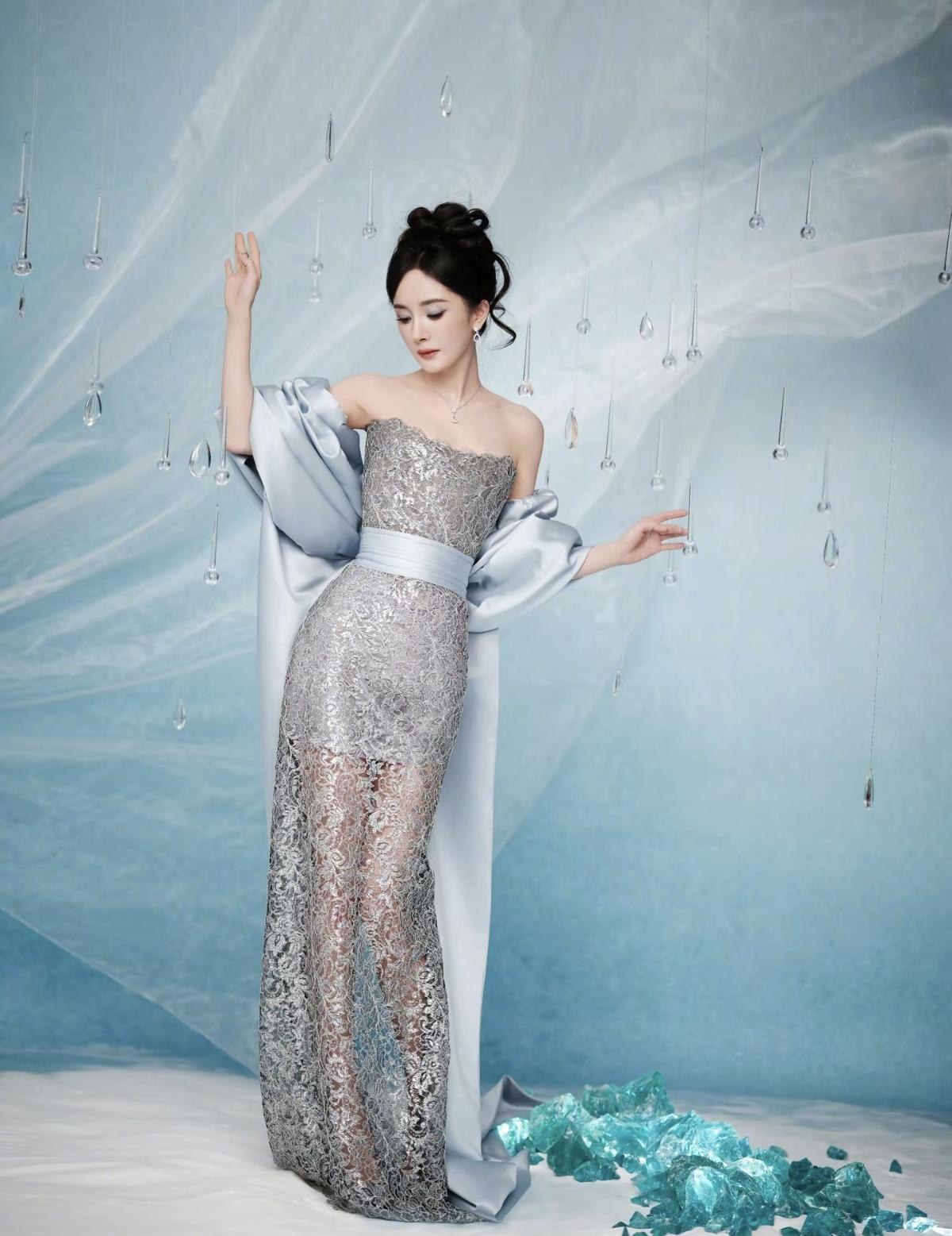 淡蓝染高定,抹胸裁清辉✨ 杨幂一袭柔雾蓝缎面礼裙,将爱琴海的晨光揉进衣摆,利落剪裁勾勒出流畅肩颈线,行走时裙摆漾起的光泽,恰似冰镇苏打水炸开的细碎气泡,清冷中藏着克制的浪漫[加一][玫瑰]娱乐明星