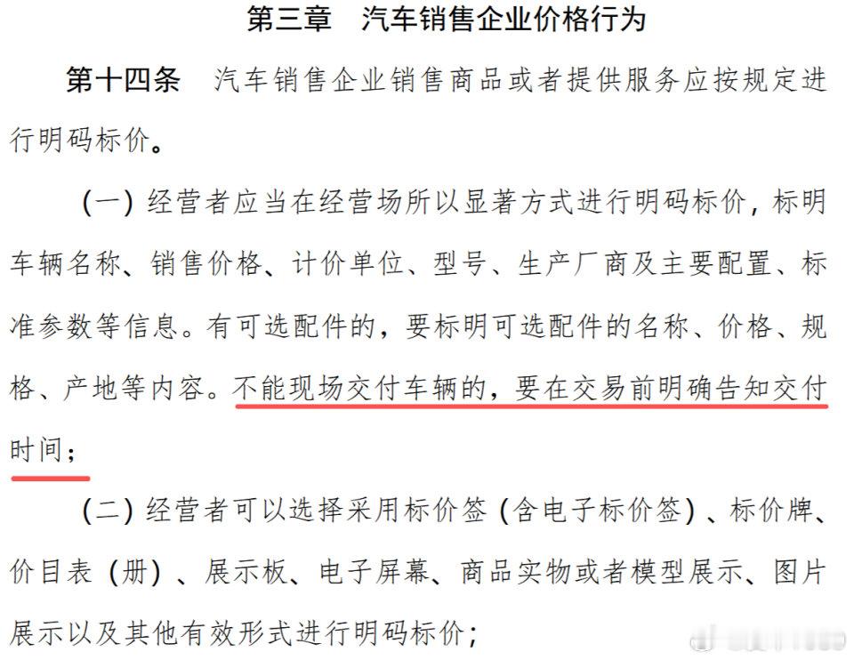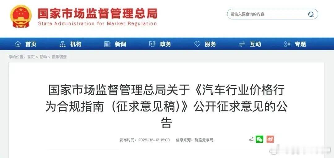 【爱车安全贴士 国家出手!卖车须明码标价,并提前告知交付时间!多家车企表态】国家出手要求卖车须明码标价 2025年倒计时,车企们忙着年末促销的同时,监管部门却将一记重锤砸向部分“内卷式”竞争行为。12月12日,国家市场监督管理总局发布《汽车行业价格行为合规指南(征求意见稿)》(下称“意见稿”),规范汽车行业价格行为网页链接