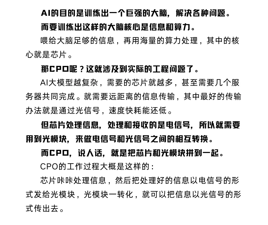 但是CPO到底是啥,和AI有什么关系,很多朋友并不清楚。