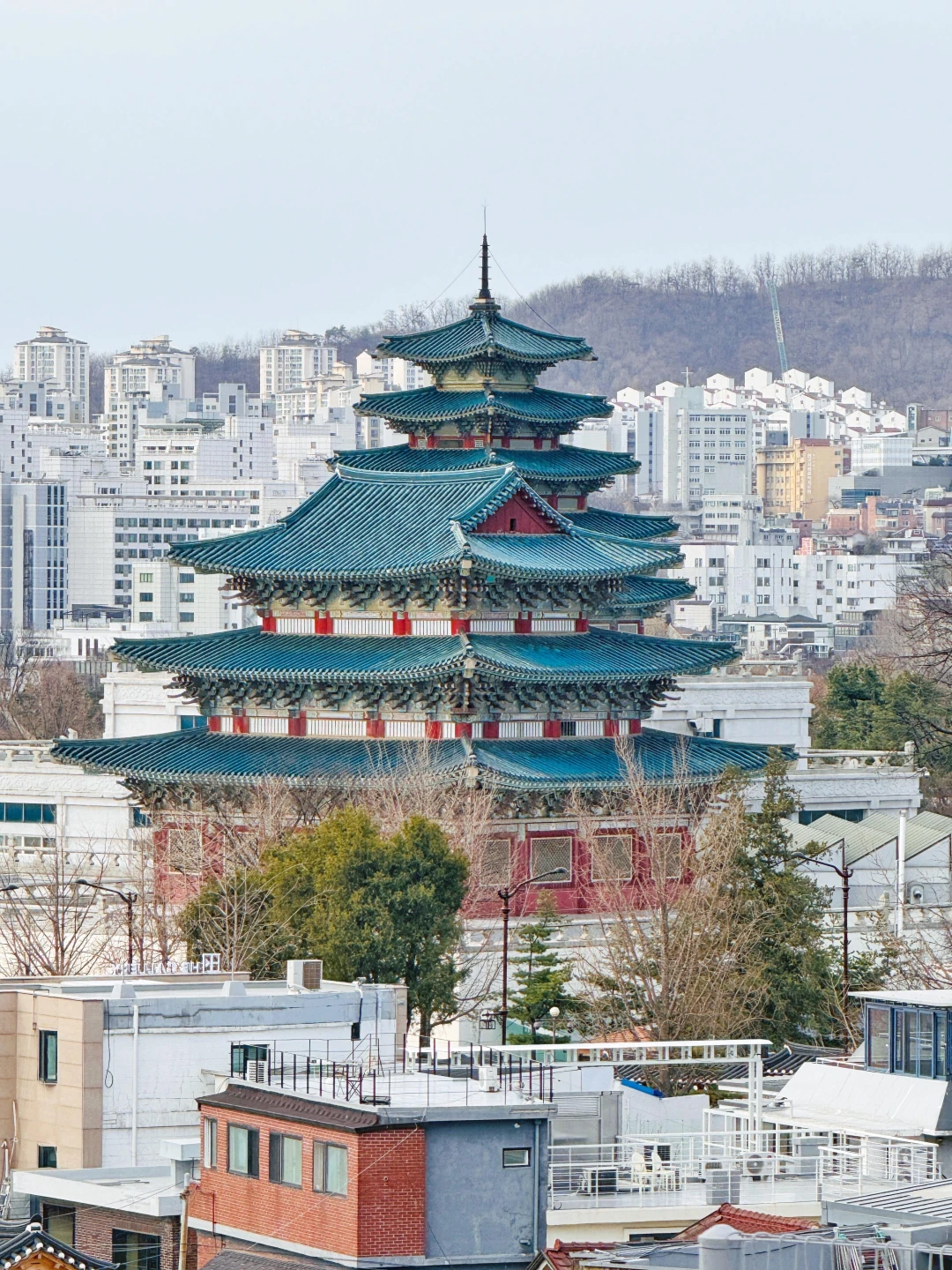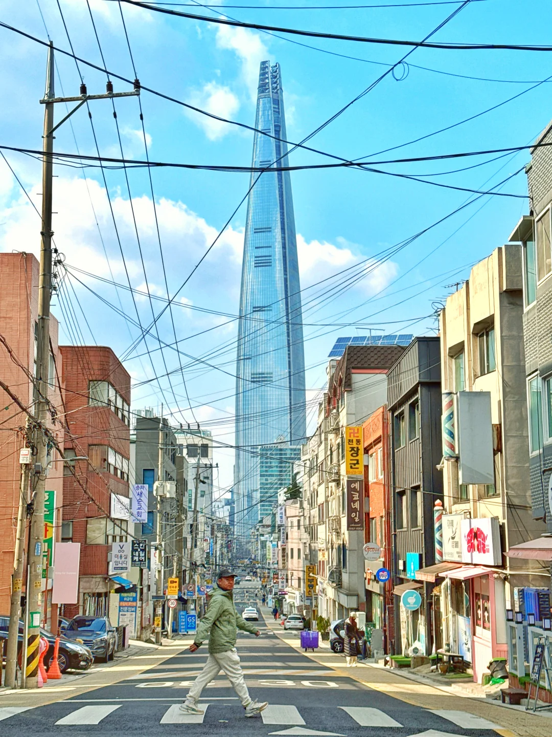 电线交错下的首尔标志建筑,有一种时光交错感
