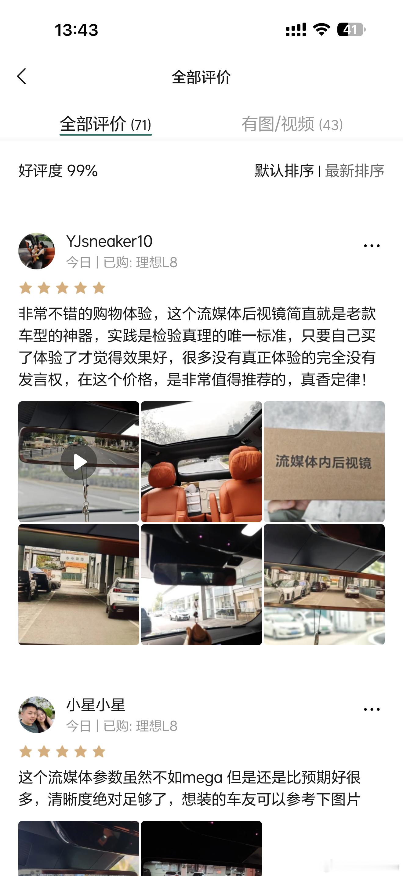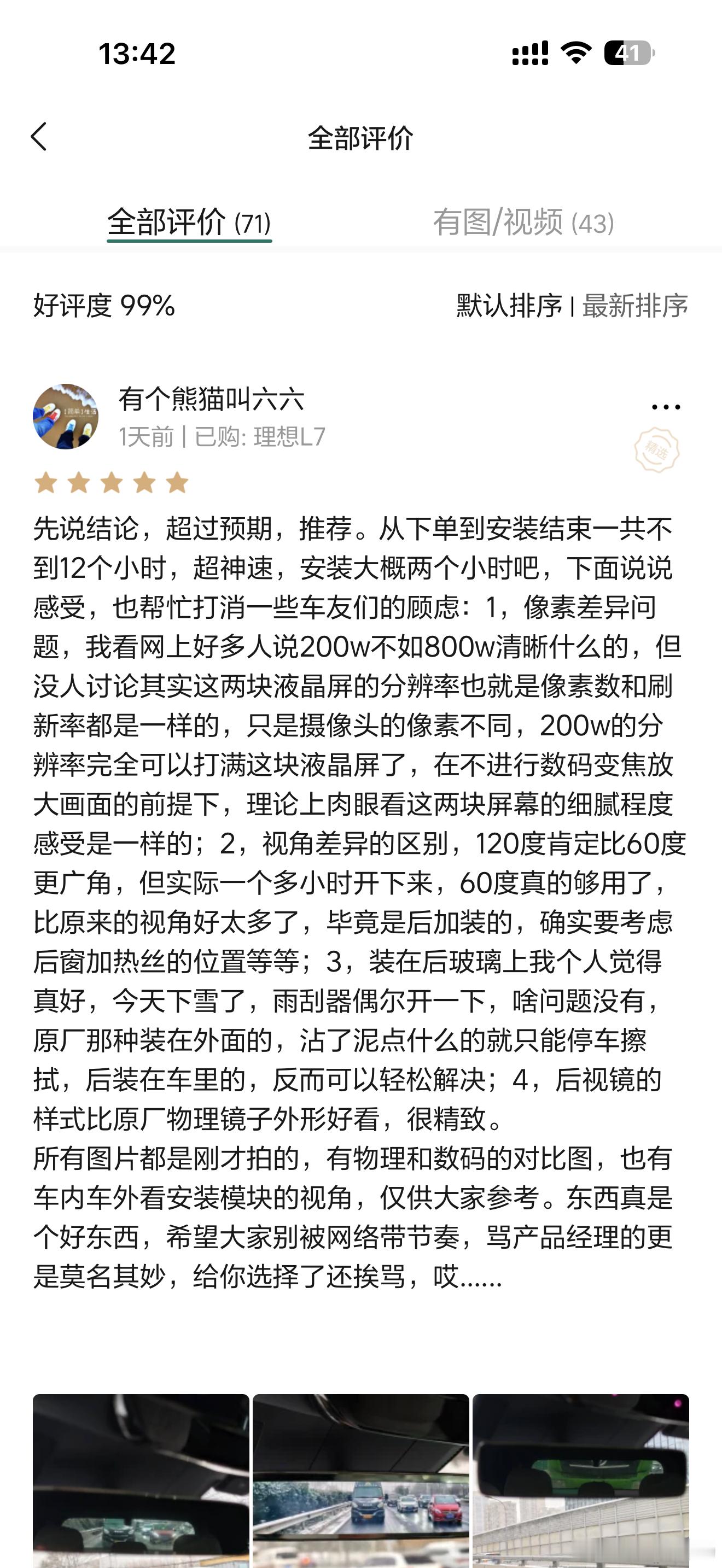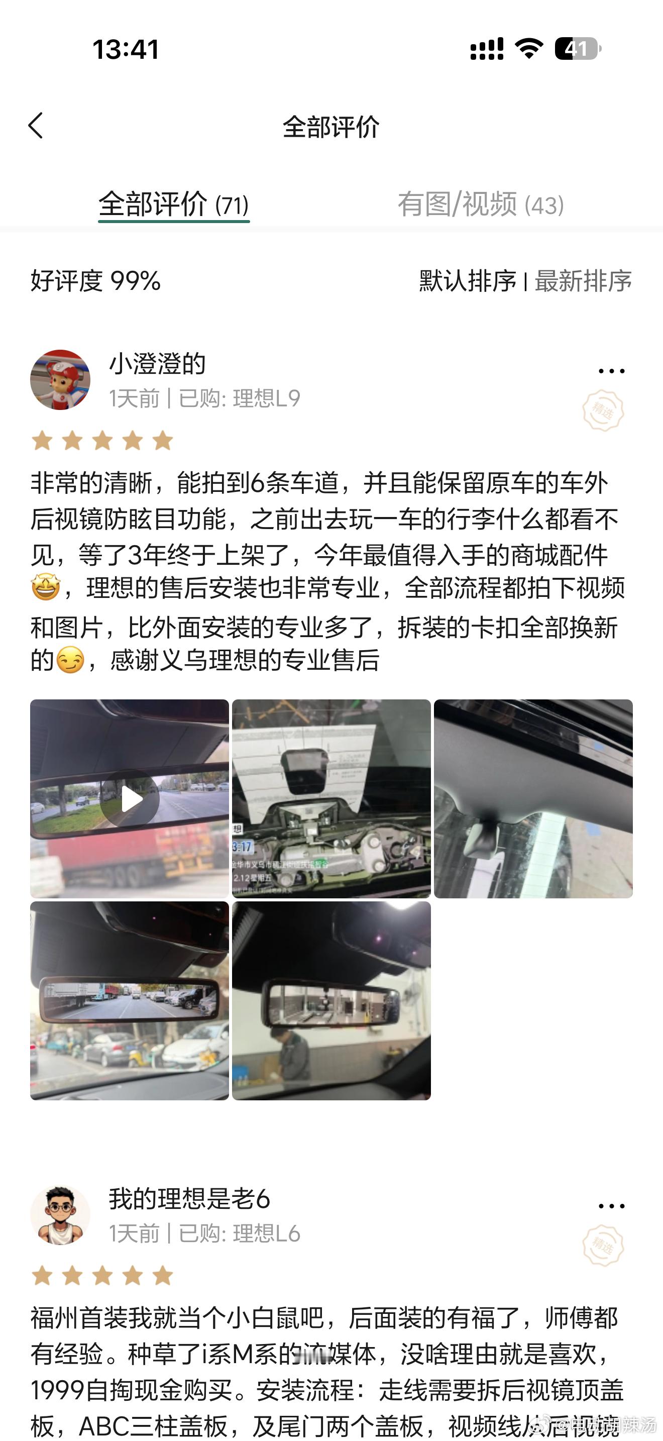 理想L系列这个官方后装流媒体后视镜,注定也是低开高走!发布时一片骂声,第一批吃螃蟹的人装完后直呼真香!和我的看法完全一致,这个参数不拔尖,但使用体验绝对不会差,也确实如此!所以我一开始就建议大家看了别人装完的效果再决定是喷是夸!理想汽车