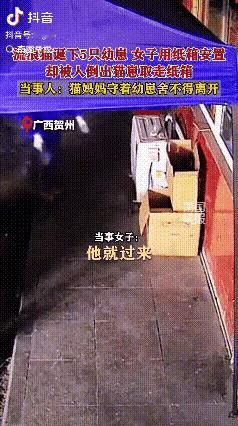 这就是人性。广西贺州一环卫工为捡一个纸箱,抄了流浪猫一家6口的家。这个流浪猫生下了5个崽,天气寒冷无处躲藏,附近开店的女子找了一个纸箱垫了一些衣物,给流浪猫弄一个临时的窝 开店女子出门倒垃圾时,看到环卫工正拎着那个纸箱往垃圾车走。五只没睁眼的小猫崽露在外面,冻得直哆嗦,猫妈妈在旁边急得团团转,一声声叫得凄厉。 她赶紧上前拦住,说这是给猫做的窝,不是垃圾。环卫工皱着眉摆手,说自己扫街就是要清这些破烂,耽误功夫不说,纸箱还能卖几毛钱。 周围很快围了几个路人,有人帮着女子说话,说天这么冷,小猫没了窝肯定活不成。也有人替环卫工辩解,说他挣点辛苦钱不容易,一个纸箱而已没必要较真。 双方各说各的理,吵得不可开交。猫妈妈趁乱冲过去,一口叼住一只小猫崽,慌慌张张躲到了店门口的台阶下。 最后还是开店女子跑回店里,拿了个新塑料袋,塞给环卫工几个空瓶子。环卫工掂了掂瓶子,没再说话,转身把纸箱放回了原处。 看着猫妈妈小心翼翼把小猫崽一只只叼回窝里,围观的人渐渐散了。没人说得清谁对谁错,只是冷风一吹,心里都有点不是滋味 各位读者你们怎么看?欢迎在评论区讨论。