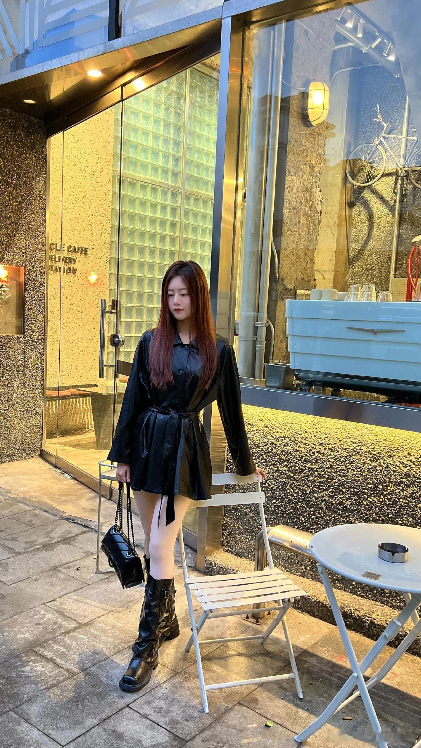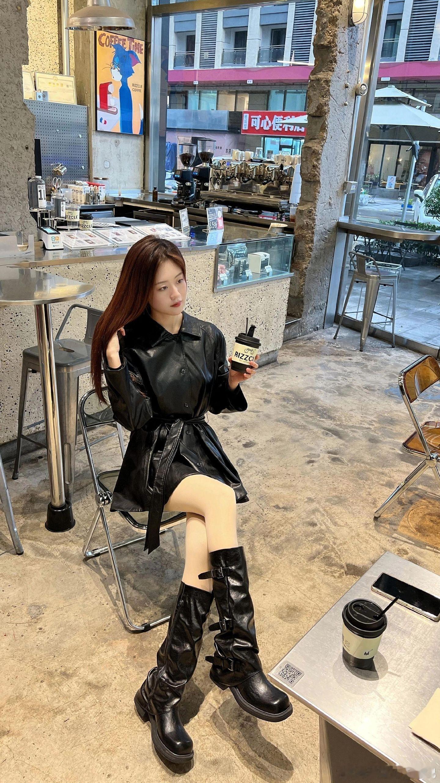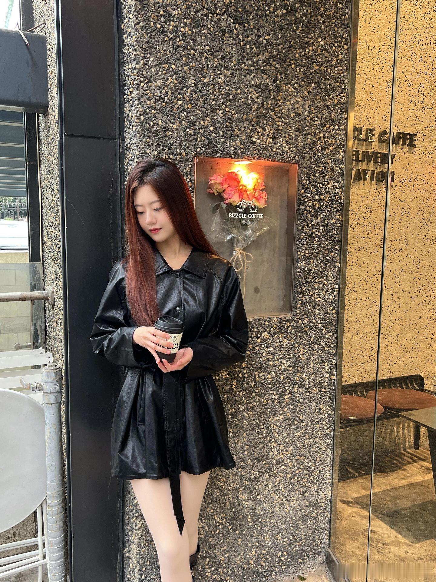 今天穿什么 皮衣,光腿神器配黑靴,出门啦美女绘梦长廊