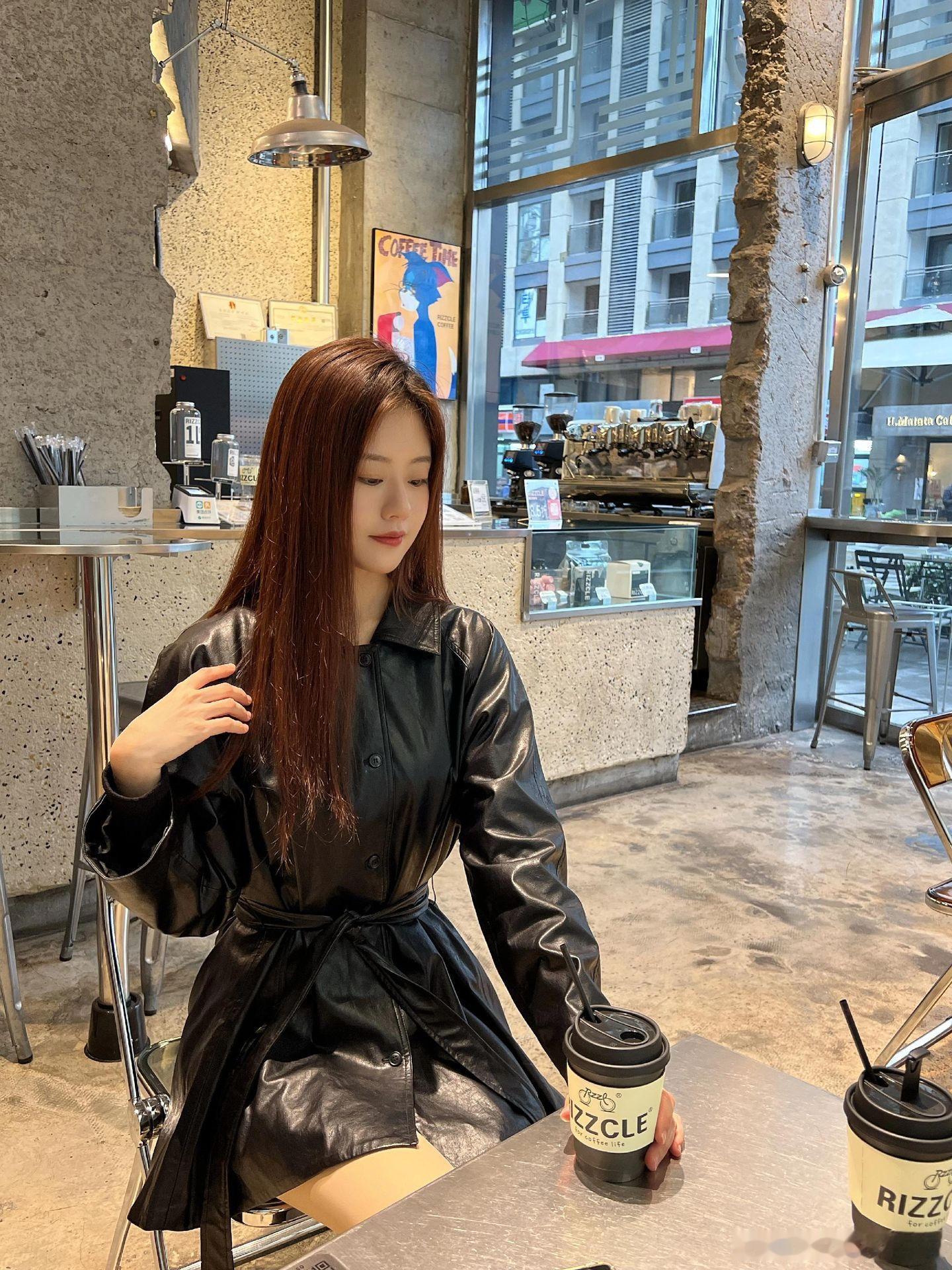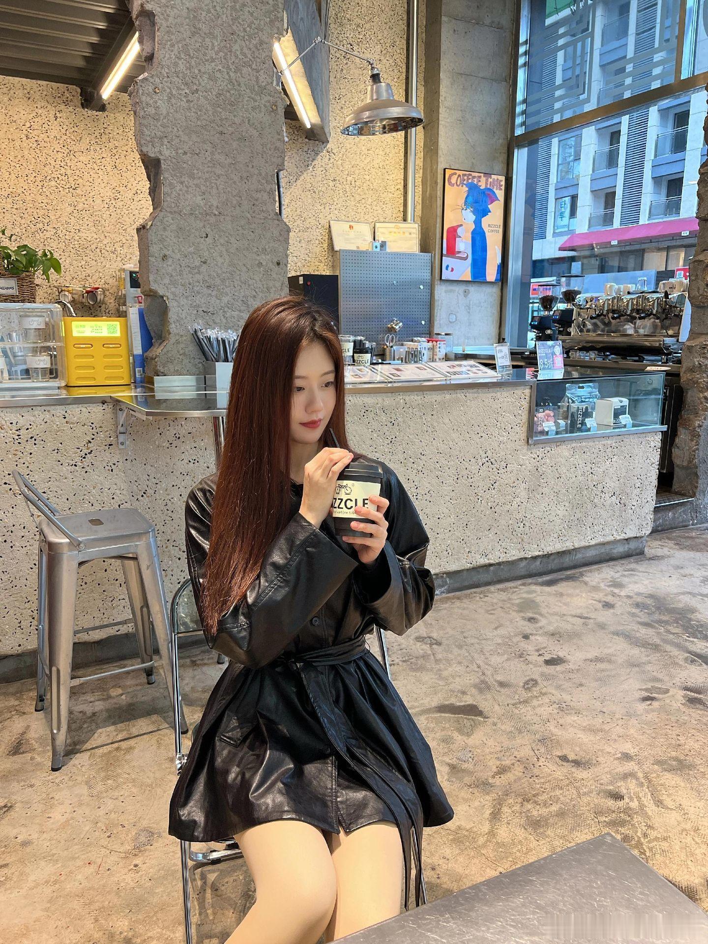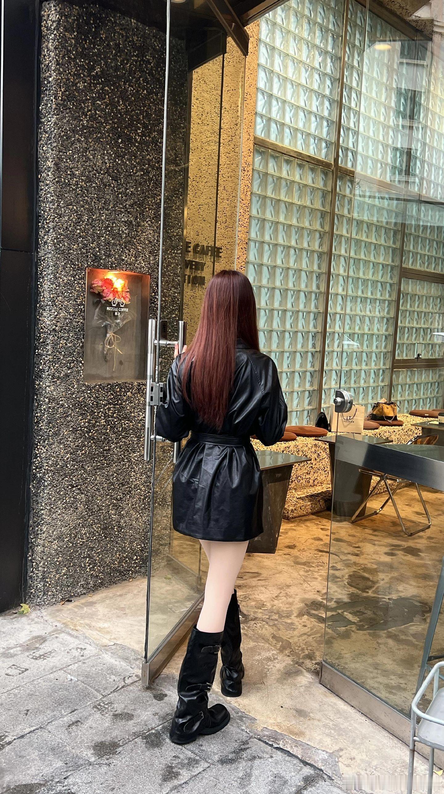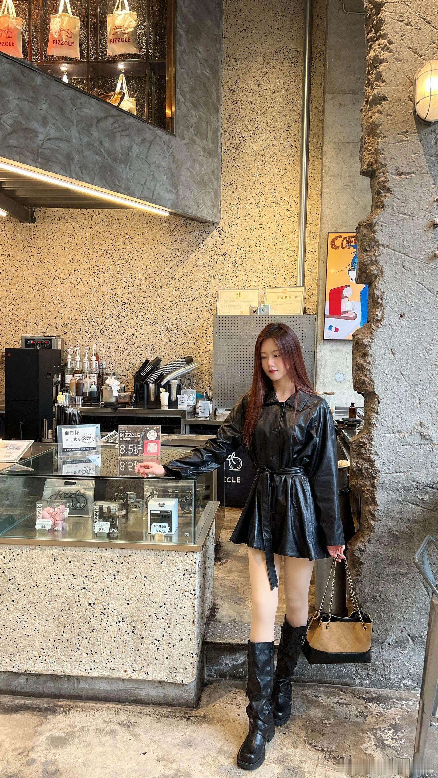 今天穿什么 皮衣,光腿神器配黑靴,出门啦美女绘梦长廊