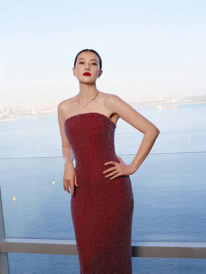高圆圆抹胸裙韩国街头偶遇高圆圆 美哒哒
