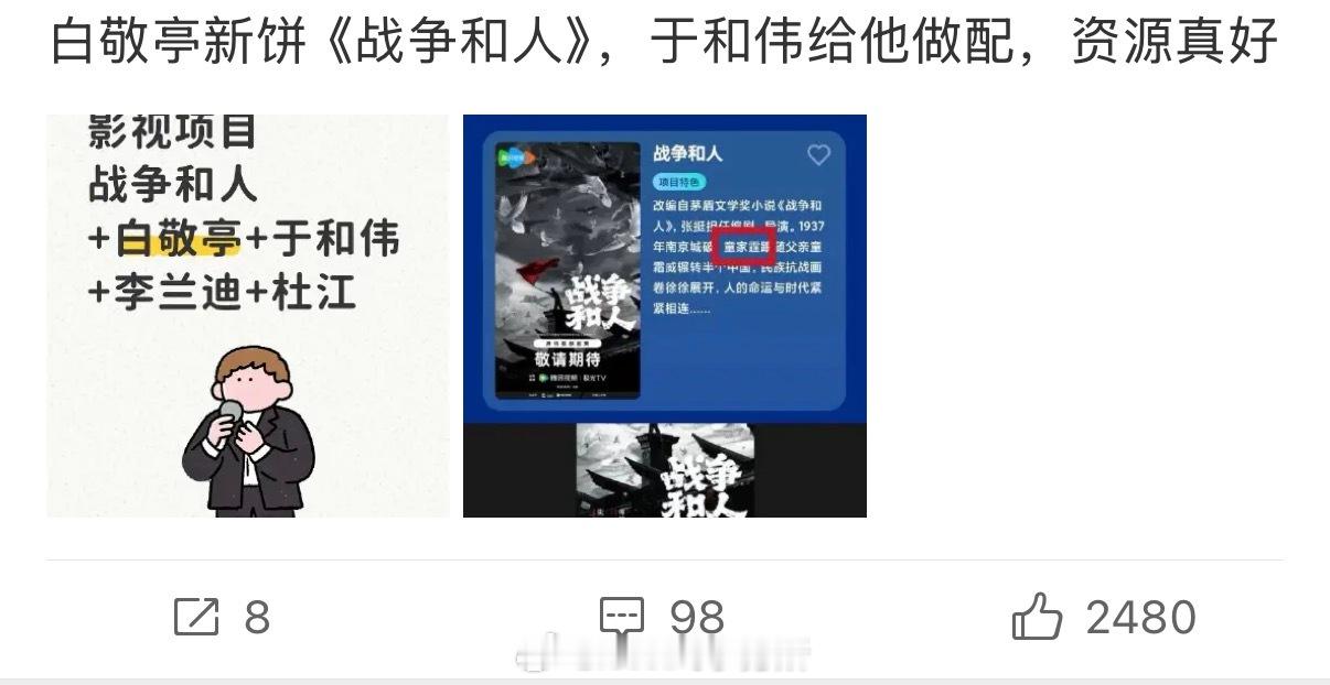 于和伟当过白宇帆二番没什么人涛 白敬亭和他合作 就被说资源好了 还是白敬亭关注度