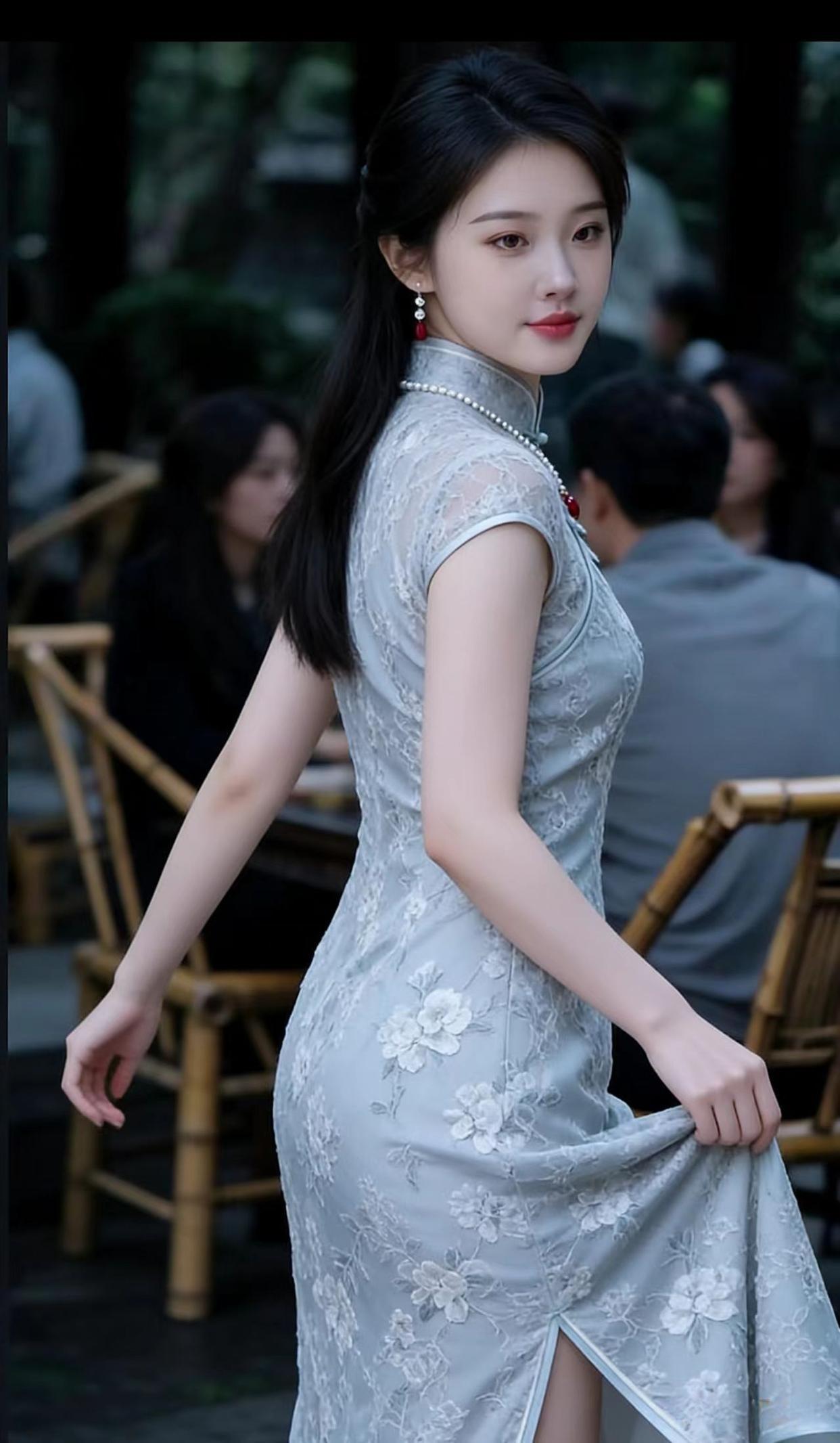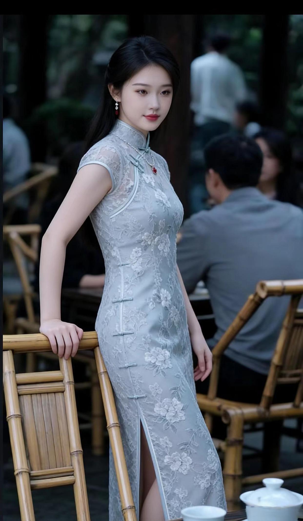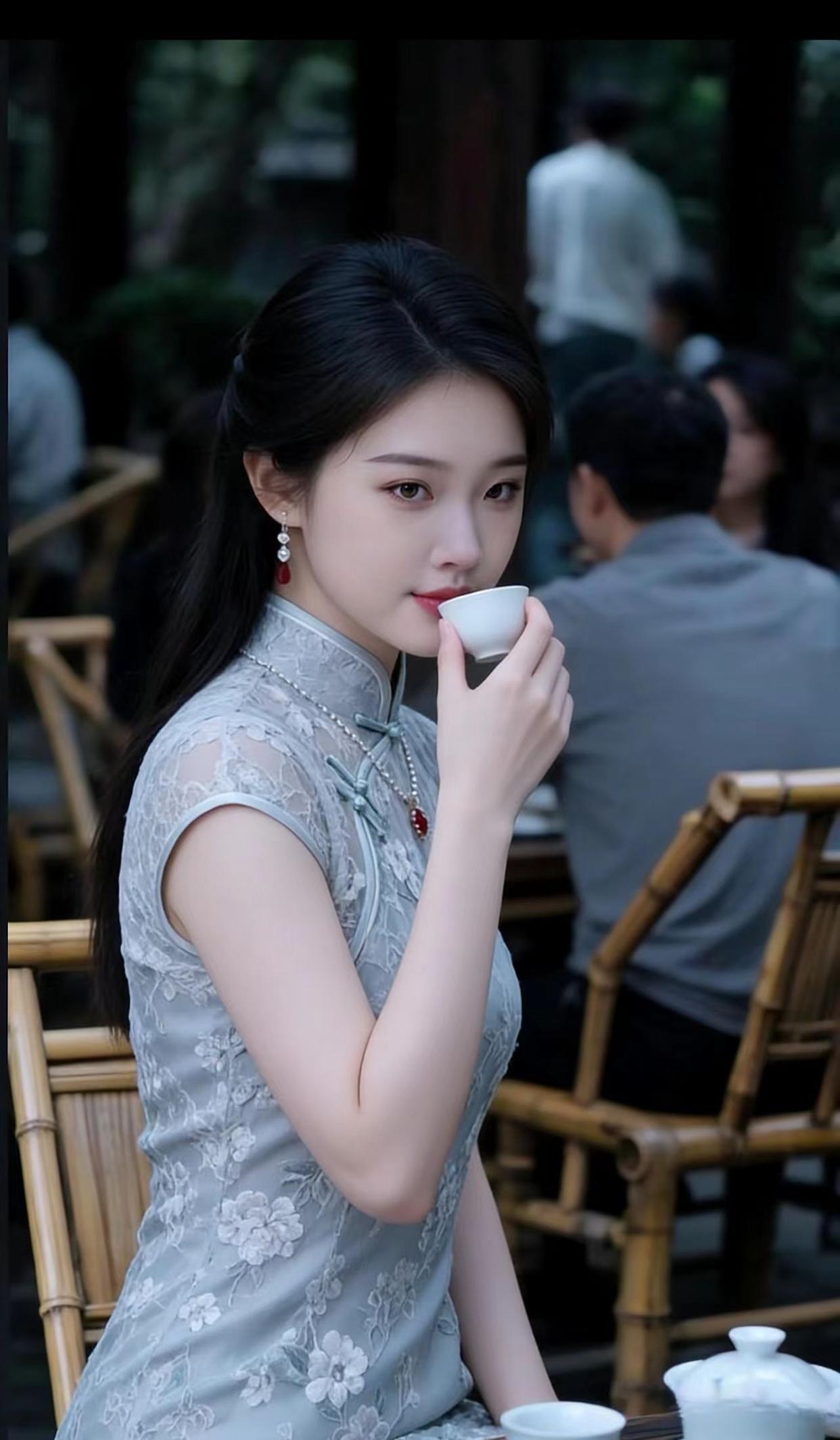 优雅旗袍少女,静坐茶馆,沉思时光。