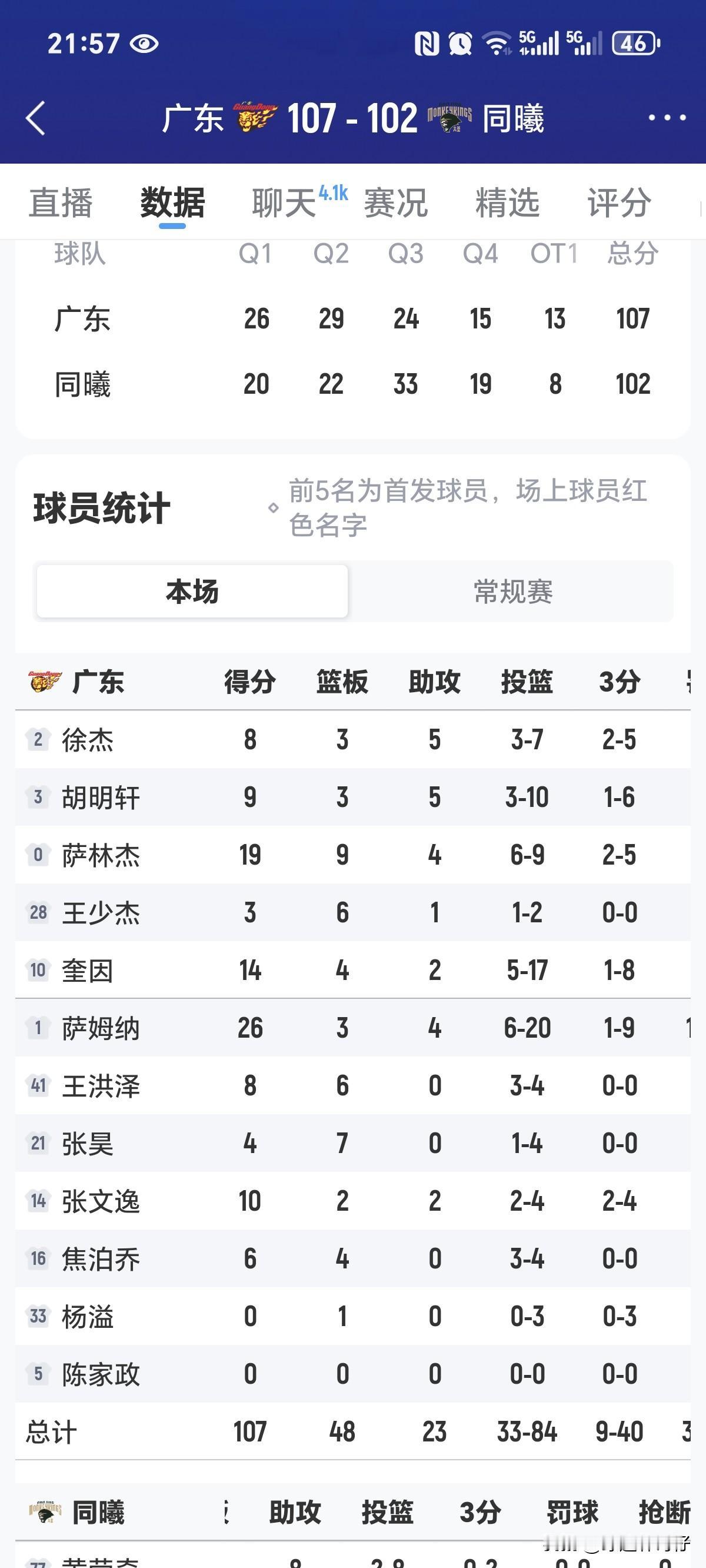 杜锋脸红不?引进那么多精兵良将,却幸运地被南京逼进加时。那只是南京哦! 防个郭昊文都防不住,被拿了42分。 奎因17投中5,三分8中1。 萨姆纳三分9中1。 胡明轩三分6中1。 这都什么水平? 联赛第一场危机就来了,防,防不住,攻,攻不进。两大强力外援那么拉胯,胡明轩彻底退化。 接下来再打中等水平的球队怎么办呢?再强一点的呢?这水平争冠?