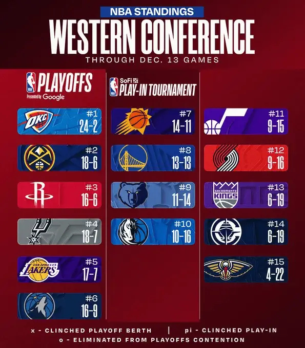 今日马刺战胜雷霆后,湖人来到西部第五。马刺连续淘汰湖人雷霆,含金量十足,这赛季不
