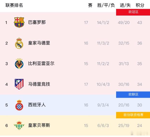 西甲才踢到第17轮,画风却已经有点“没意思”了——原因如下:巴萨率先完成第17轮比赛,轻松拿下奥萨苏纳,积分飙到43分,领先少赛一场的皇马7分。状态相当稳,甚至彻底抹平了此前国家德比失利的影响——稳如磐石没跑了。反观皇马,近况真的难以用好词形容:联赛过去5轮只赢了1场,不但把榜首拱手让人,还在欧冠接连输给“残阵”利物浦和曼城,形势岌岌可危,主帅阿隆索的帅位随时可能不保。这样一比,差距已经肉眼可见,本赛季巴萨多半要顺利卫冕——所以说,悬念不大,没啥意思了!金靴争夺?姆巴佩16场轰下16球,直接一骑绝尘,不出意外,也没多少悬念。至于欧冠资格,更是惯性组合:巴萨、皇马、马竞、黄潜这几支老面孔,几乎没新意可言。