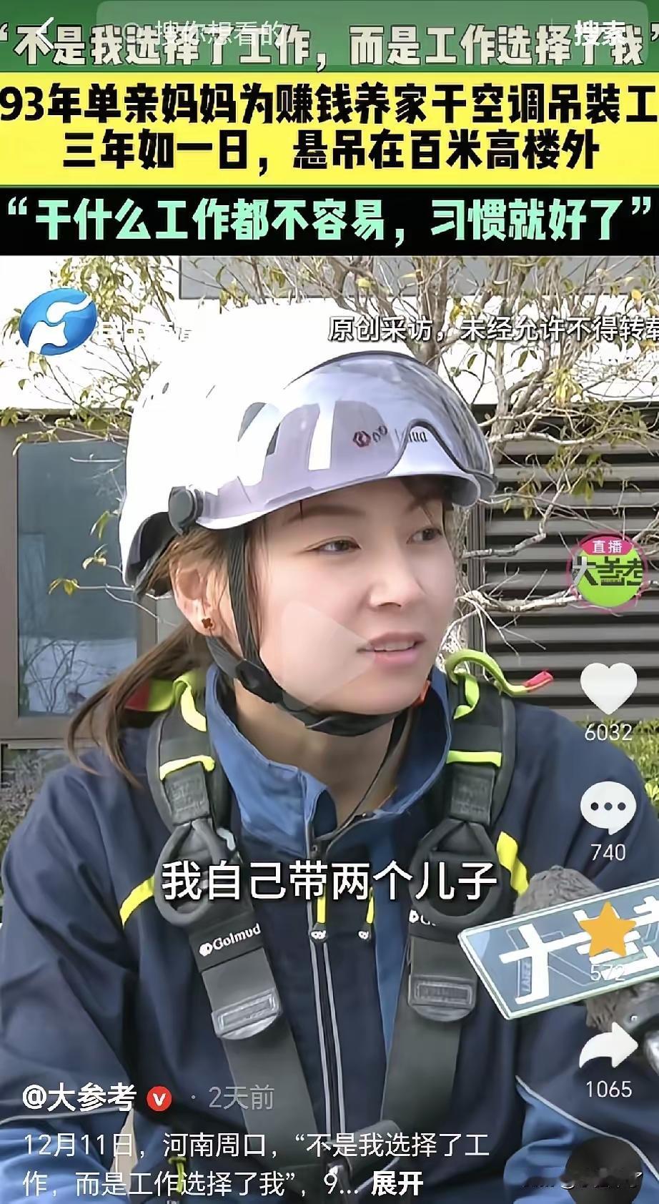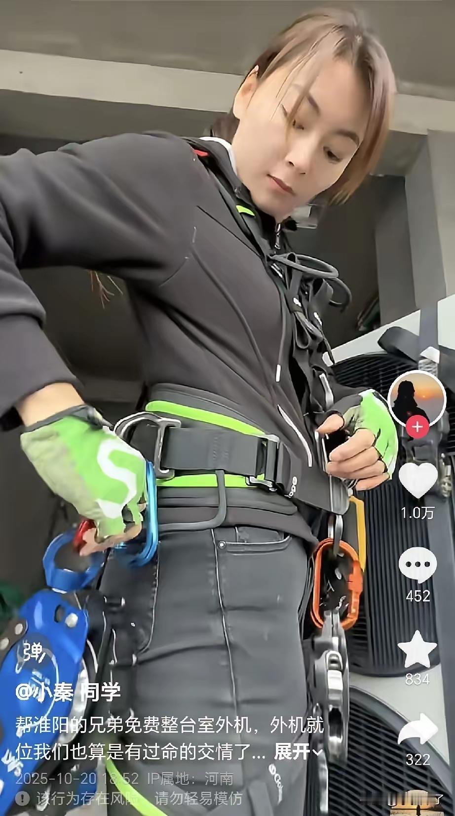 离婚后独撑俩娃!93年美女抛开“体面”投身空调安装,如今成56万粉网红,前夫看了会后悔吗? “不蒸馒头争口气!”河南周口93年美女秦可可的故事,近期火爆全网。3年前离婚时,为了不让两个儿子受委屈,她果断争取到全部抚养权,独自挑起育儿的重担。 虽说前夫每月会支付抚养费,但一想到儿子们的兴趣班、补课费,还有未来买房、买车、彩礼等长远开支,秦可可深知压力巨大。为了给孩子更好的生活,她不顾他人眼光,选择了高薪却艰辛的空调安装工行业——在唐山,这个行业旺季时一天能赚1000 - 2000元,高收入的背后,是“胆大心细”的严苛要求,一般人还真难以承受。 更令人惊喜的是,秦可可打破了大家对空调安装工“脏兮兮”的固有印象。她每天都会清洗工作服,始终让自己保持干净整洁,不少顾客都不禁称赞:“人美手艺还好!”这份对细节的坚持,让她在行业里赢得了好口碑。 秦可可不仅能吃苦,还极具远见。她明白空调安装是体力活,年纪大了会力不从心,便早早提前布局转型。如今,她已从一线安装工逐步转向幕后,通过分享工作日常和行业经验,成了拥有56万粉丝的网红。现在的她,不仅能在全国各地接活,还收徒授课,甚至代理了某品牌安全绳,把小生意经营得有声有色。 从独自带娃的单亲妈妈,到月入颇丰的行业达人,秦可可用行动证明:“人不逼自己一把,永远不知道自己有多出色。”网友们纷纷为她点赞:“这才是独立女性的典范,靠自己为孩子兜底太酷了!”还有人打趣道:“前夫看到她如今的成就,估计得暗自后悔吧?” 相信在秦可可的努力和规划下,两个儿子的生活会越来越好。她的故事也告诉我们,生活从不会辜负全力以赴的人,只要有勇气、肯坚持,平凡人也能绽放属于自己的光彩。你被秦可可的坚韧打动了吗?欢迎在评论区分享你的看法!
