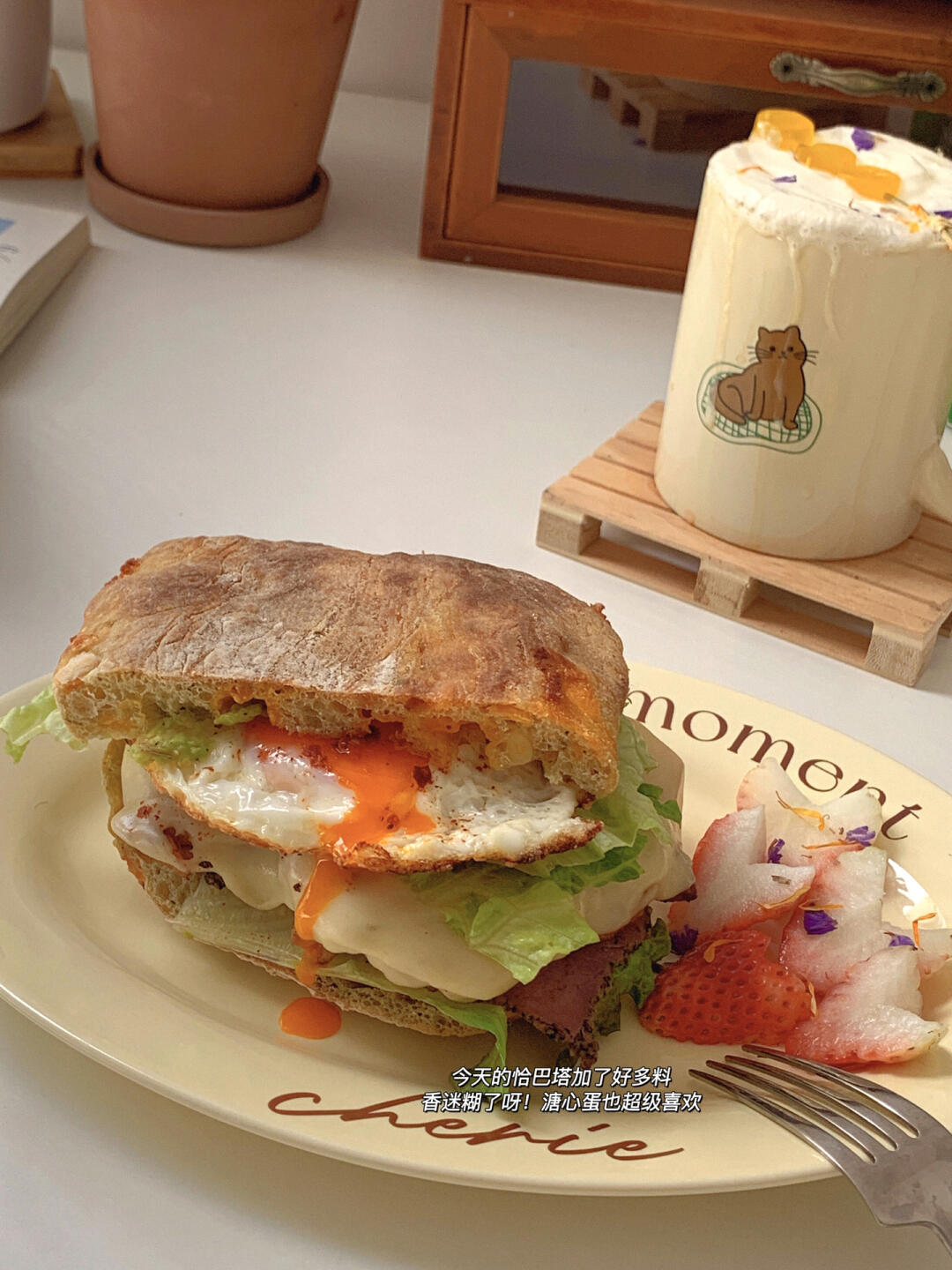 🥣早餐:恰巴塔三明治|奶油热美式|维生素软糖