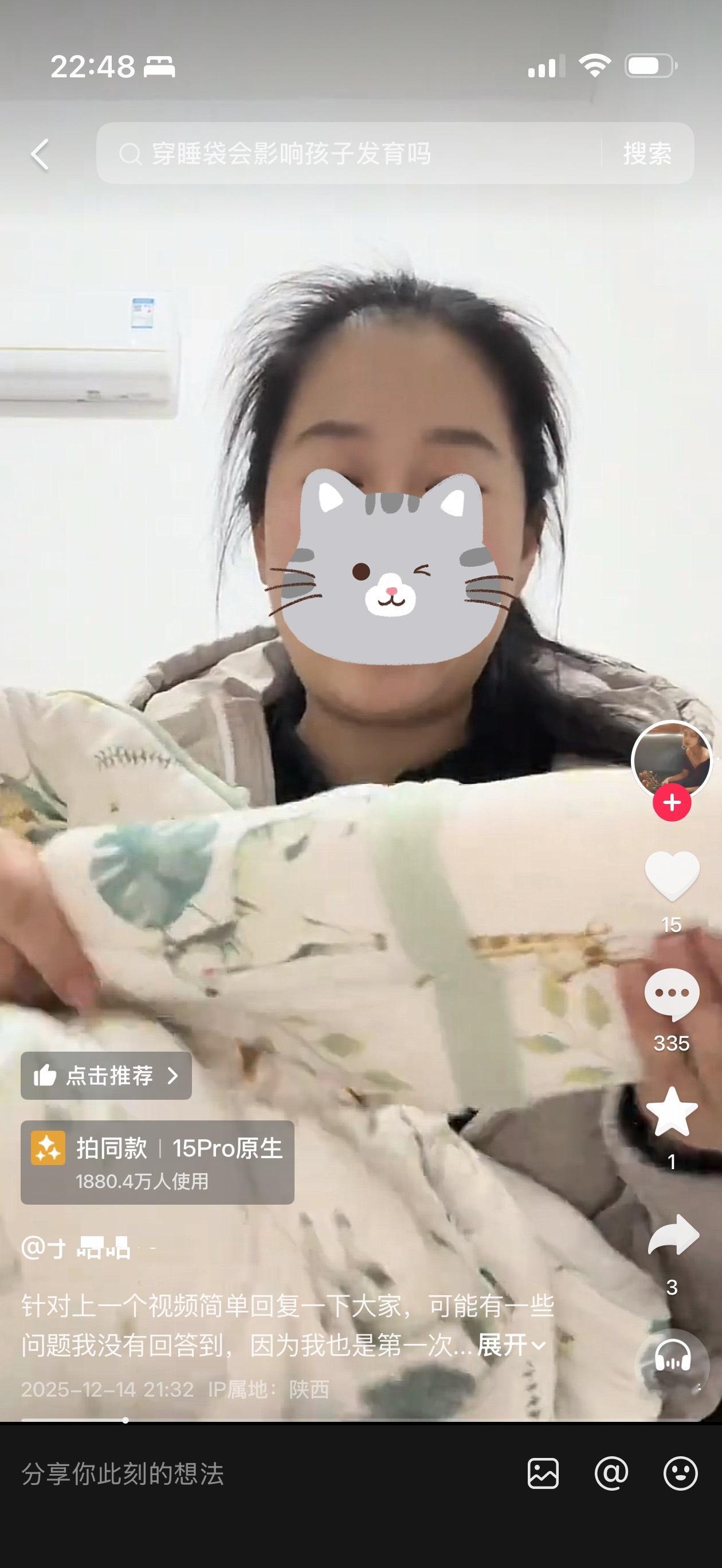 雾都奶爸 刷到一个视频,说孩子从小睡不好觉整夜哭,当时一看就知道这娃大概率是热的,穿多厚的睡袋还盖着被子,给我气的。更气的是这宝妈的第二条视频,说看了评论区很多人说热到了,解释半天说睡袋不厚被子不厚,评论区一堆人让她试试换身薄衣服跟大人一样的被子,哪怕试一晚呢,她也不回应,只是一味的辩解。 你他妈自己发的视频,娃后脑子头发都湿得打结了还狡辩呢。哎,可怜的孩子,遇到一个愚爱的妈,你特么就试一下又不会死。我家这暖气片开着,娃穿夏天的睡袋,搭个空调被也只搭肚子和后背,其实半夜他踢开了也没管,能有啥事儿呢。娃冷了会自己找被窝的,穿着睡袋热得睡不着那真是折磨。我从小就有这种心理阴影,依稀记着小时候冬天睡在爸妈中间,热得要死,脚伸不出去,左右被夹住,所以我从 4 岁开始就自己睡了,我觉得那是在解放自己,到现在我睡觉不管多冷,脚掌还得伸出被子透气。