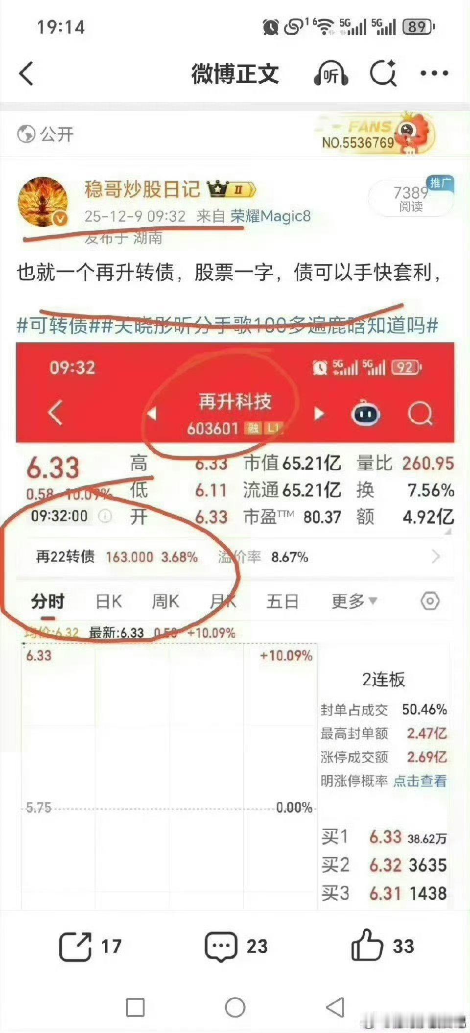 可转债周五整体还行这周五最强的还是微导转债,股票不涨可转债经常大涨,以及再22转债,股票利好不好买,可转债套利模式!!活跃些的松霖转债,欧通转债底部反复活跃,振华转债上次大涨后第二天低开就大跌,这种第二天必须高开高走才有概率!!!航宇转债,商业航天的,股票远大于可转债!!可转债关晓彤听分手歌100多遍鹿晗知道吗